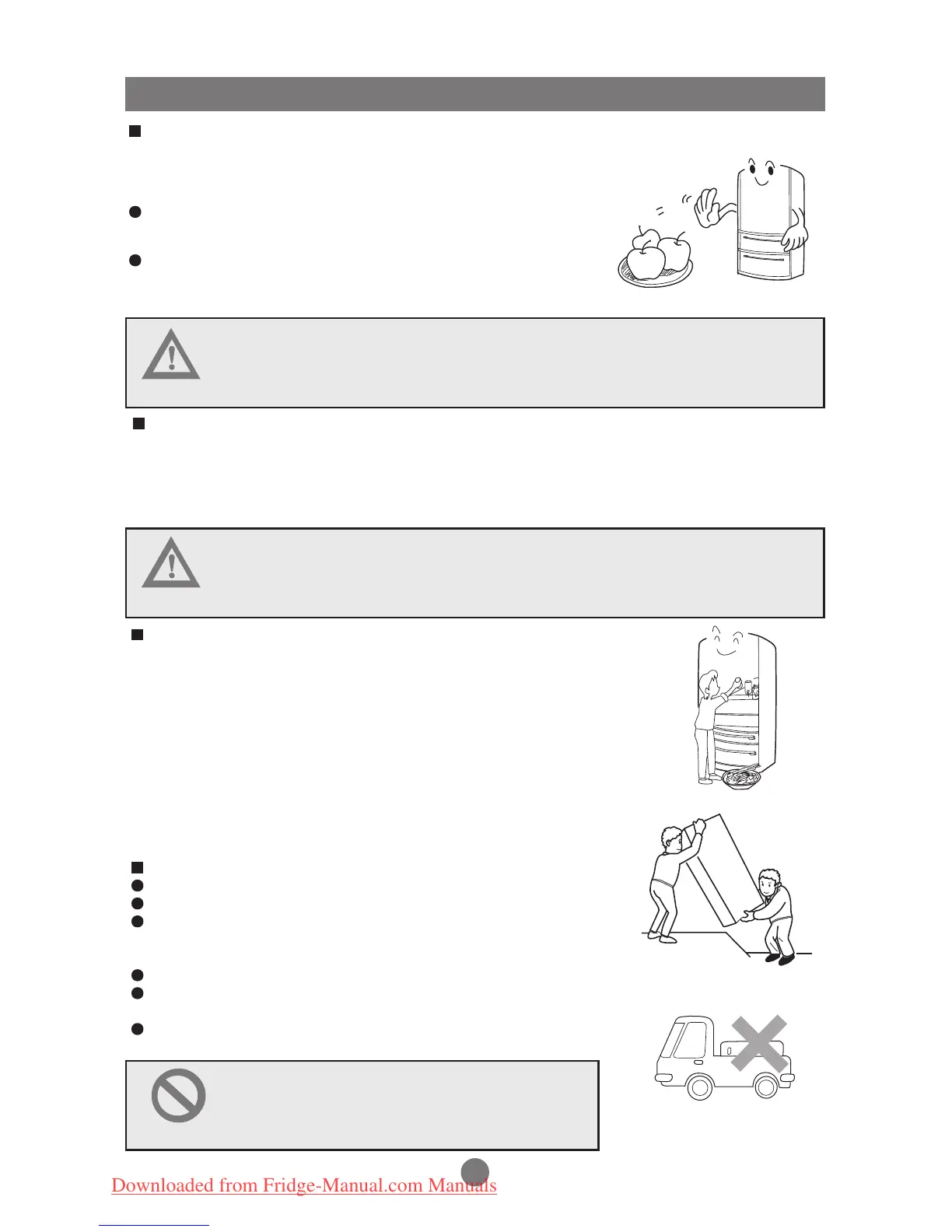 Transportieren Sie den Kühlschrank nicht an seinen Griffen;
