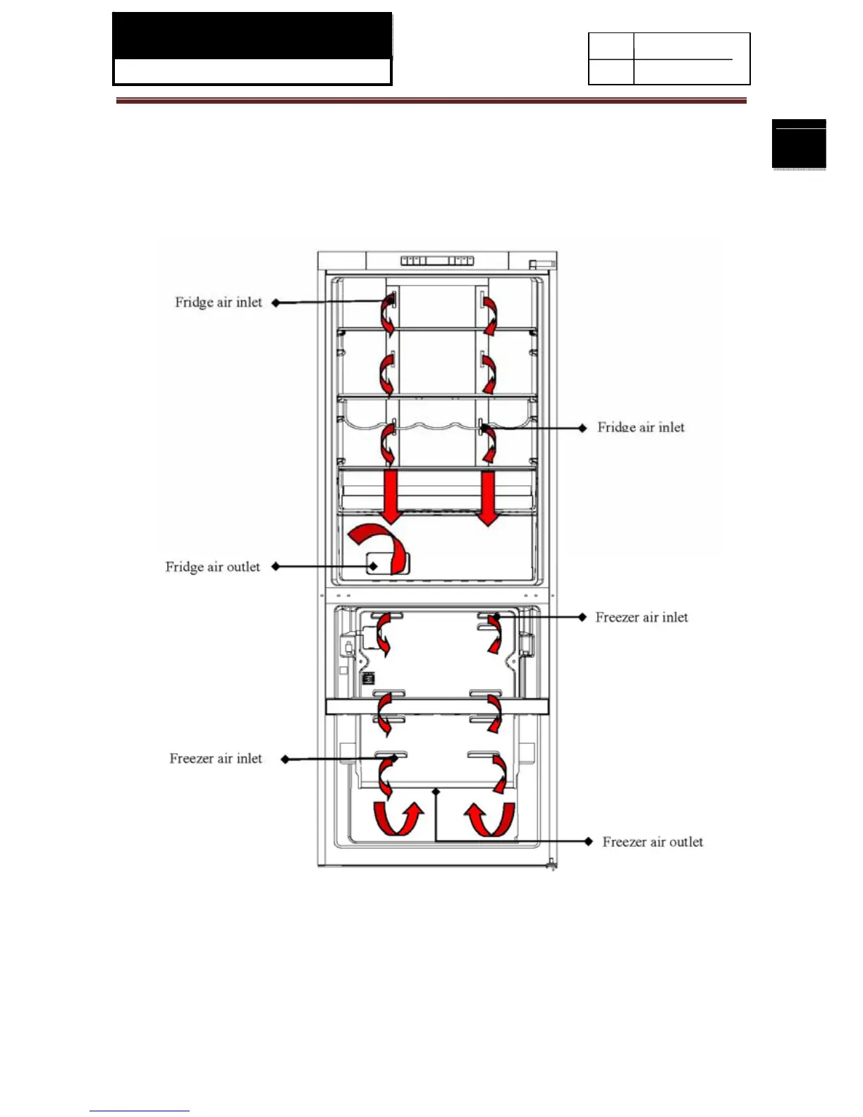 Schematic drawing and description of air circulation in the refrigerator air-duct