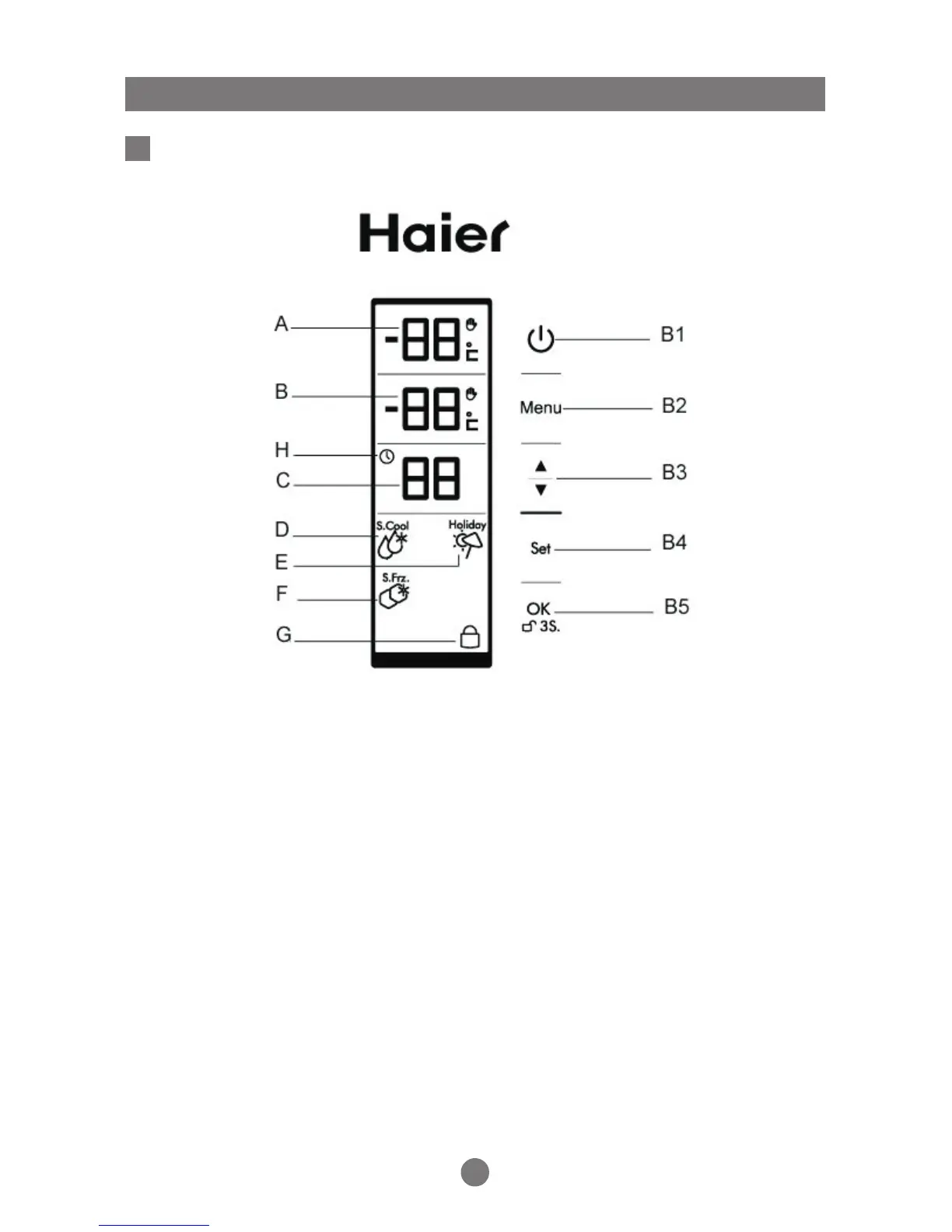 B4 Set key: press the Set key to select the quick refrigeration, holiday mode, and freezing