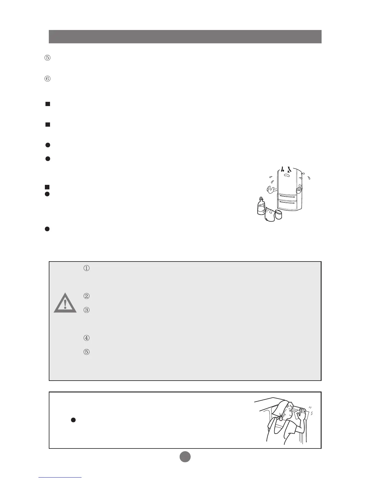 Ne pulvérisez pas et ne rincez pas le réfrigérateur avec de l'eau, afin d'éviter tout