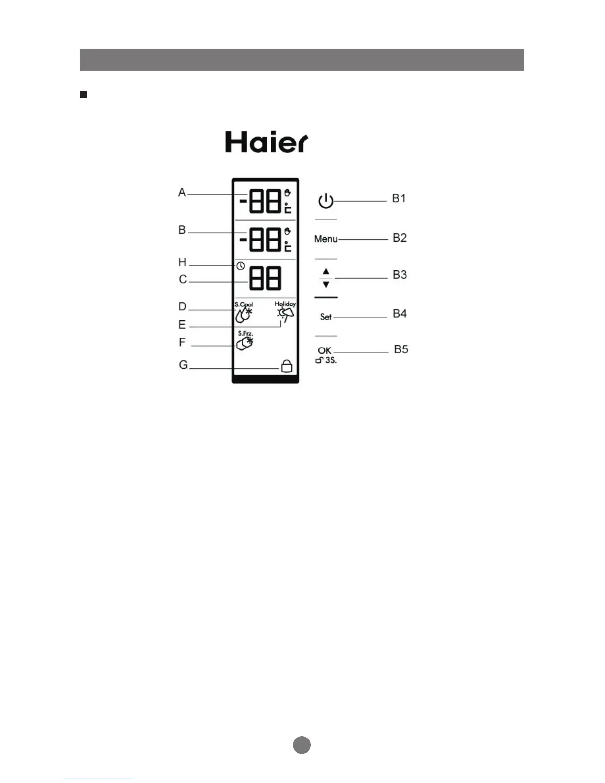 B4-Set-knop: Druk op de Set-knop om de functies te kiezen van snel afkoelen, vakantiemo