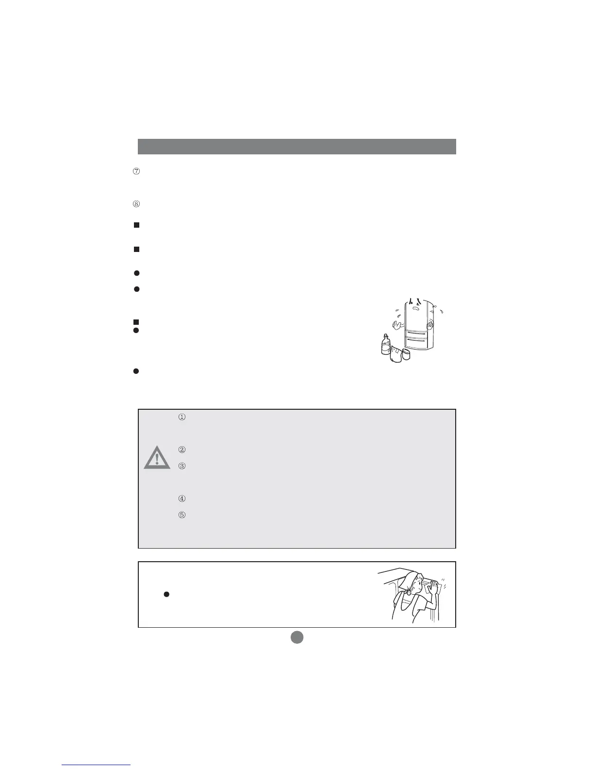 Ne pulvérisez pas et ne rincez pas le réfrigérateur avec de l'eau, afin d'éviter tout