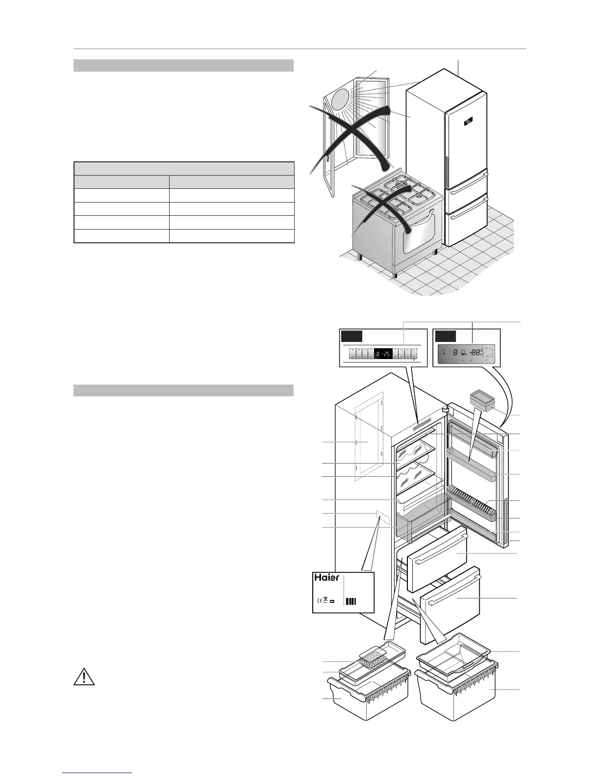 • temperature of the room where the appliance is housed