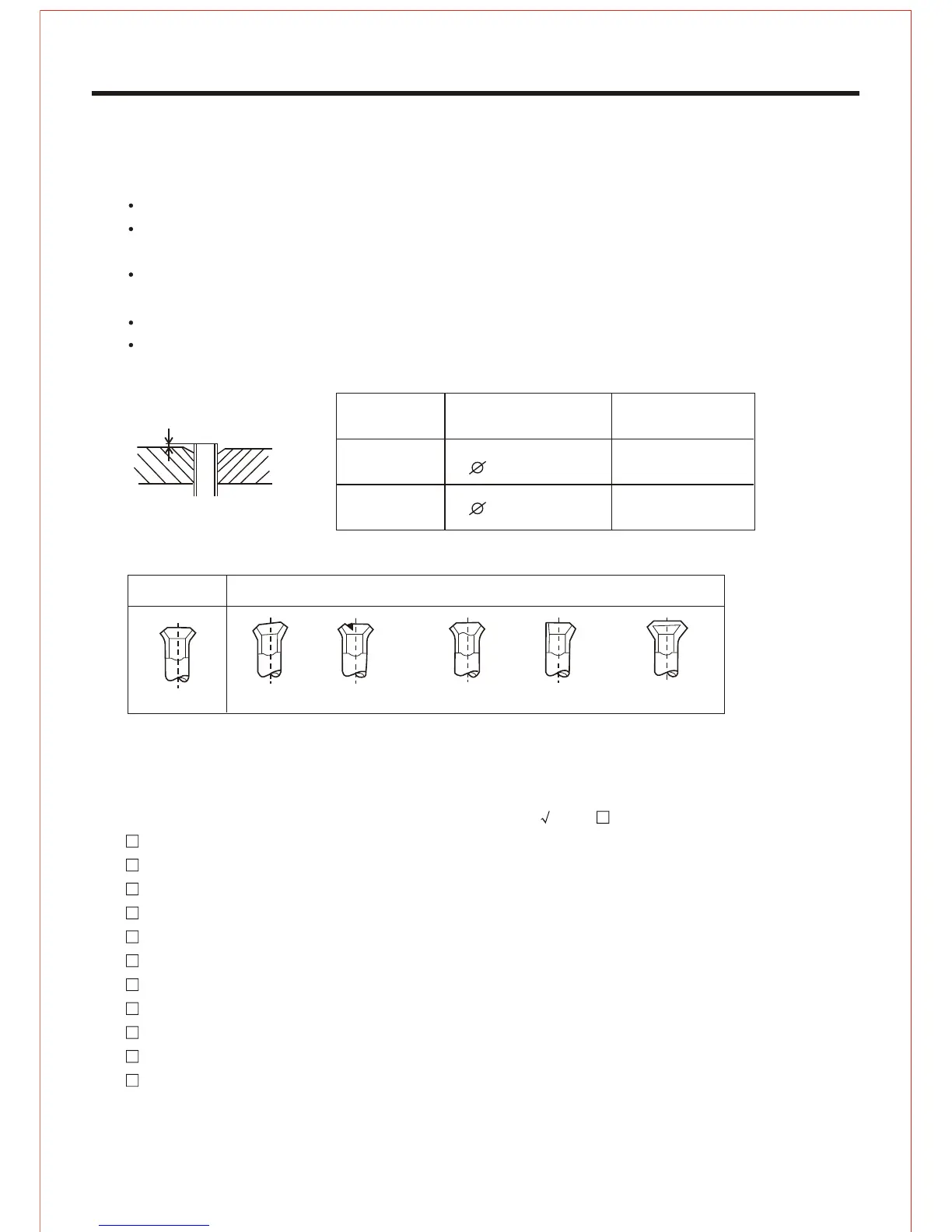 Items to be checked during test run. Please made a " " in " "