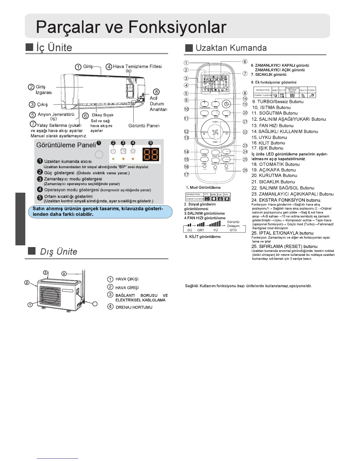 Haier AS07NS3HRA - Parçalar Ve Fonks Yonlar