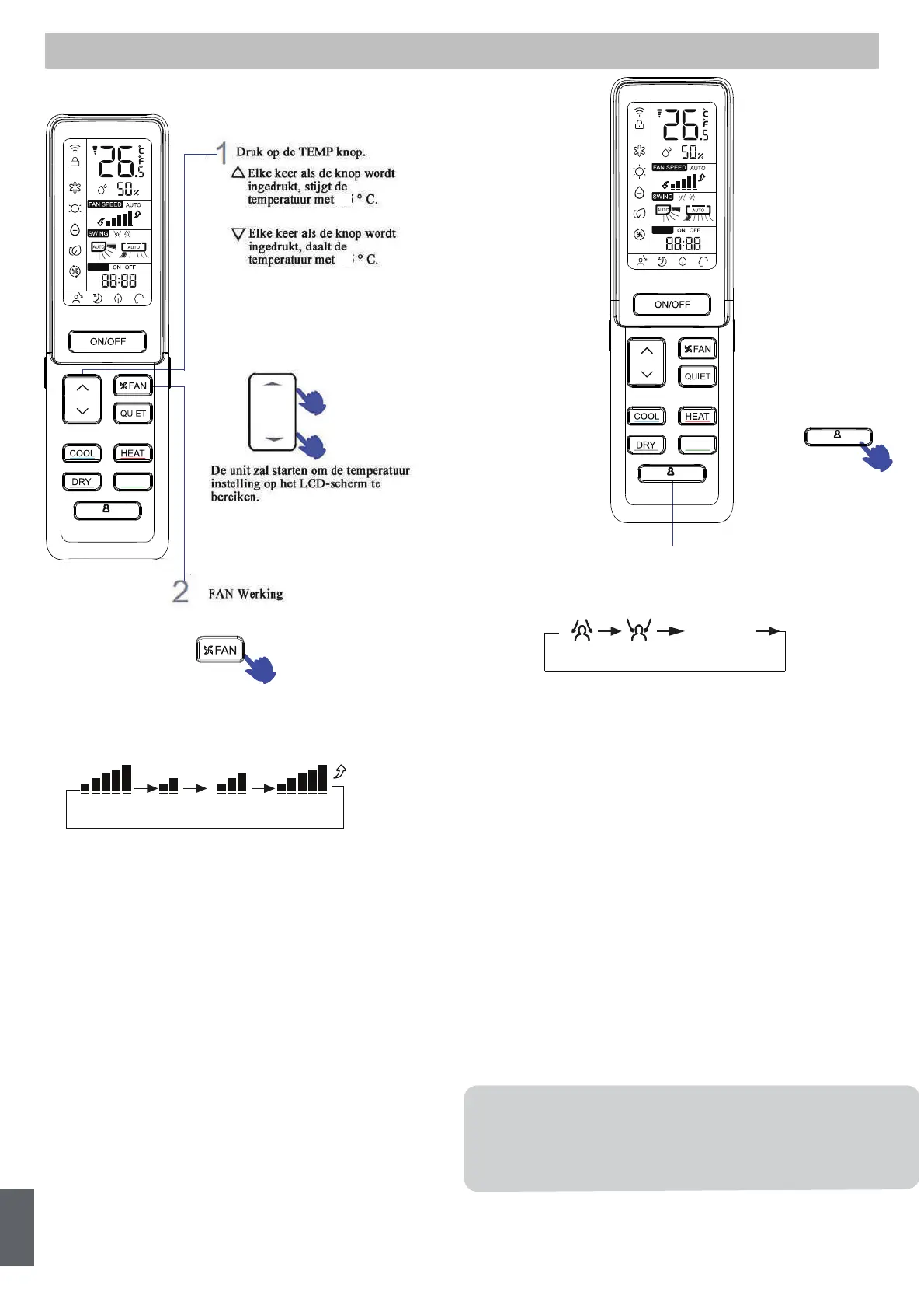 Druk op de FAN SPEED knop. Met elk druk op de knop wordt de