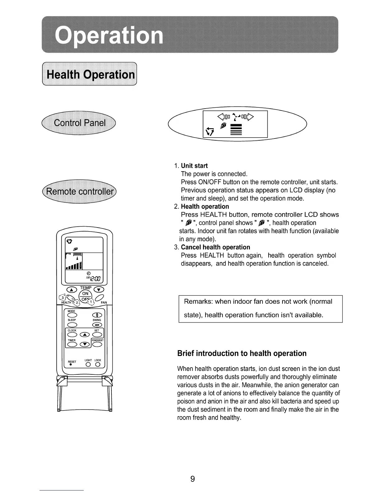 Haier AS142AHAIA - Operation Modes: Health; Health Operation Function