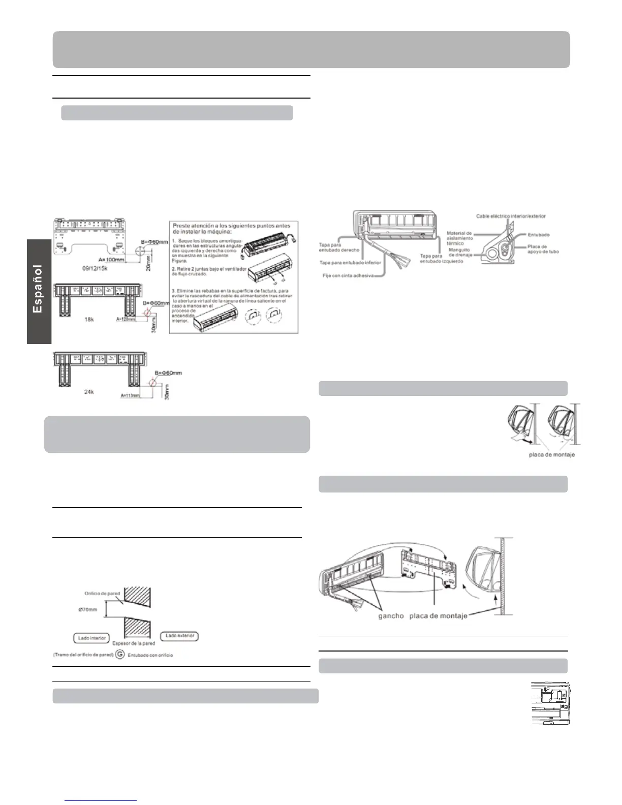 •Conecte, con antelación, el cable eléctrico interior/exterior,