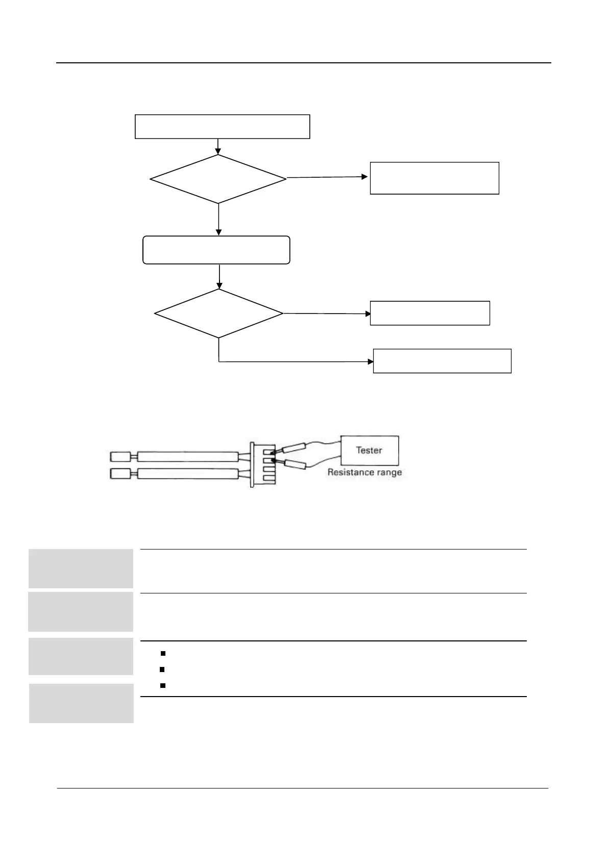 Remove the connector of the thermistor on the PCB, and measure the resistance of thermistor using tester.
