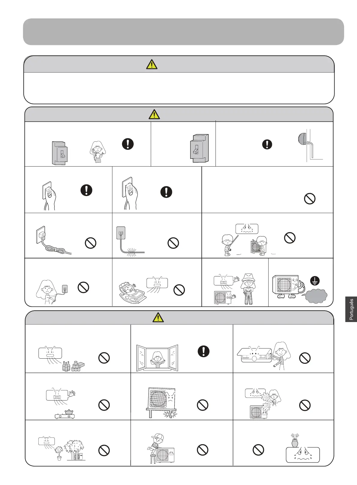 Não tente instalar o aparelho de ar condicionado sozinho porque a instalação incorreta pode causar