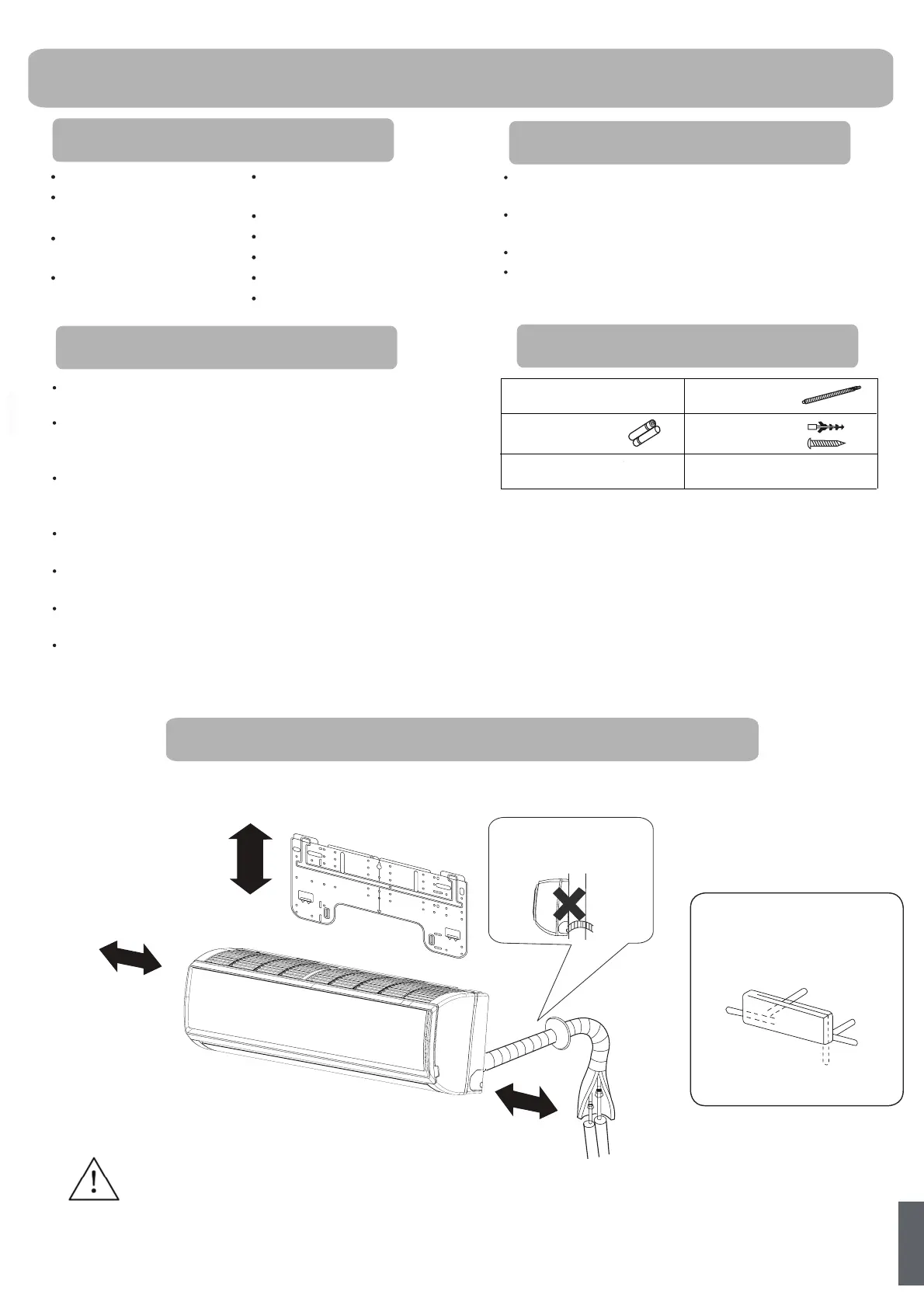 De afstand tussen de binnenunit en de vloer moet meer dan 2m zijn.