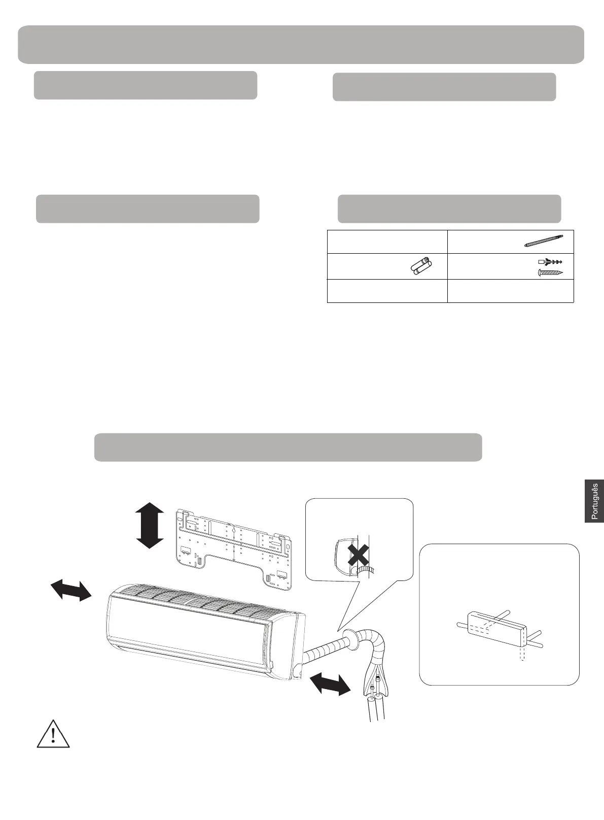 A distância entre a unidade interna e o piso deve ser mais do que 2m.