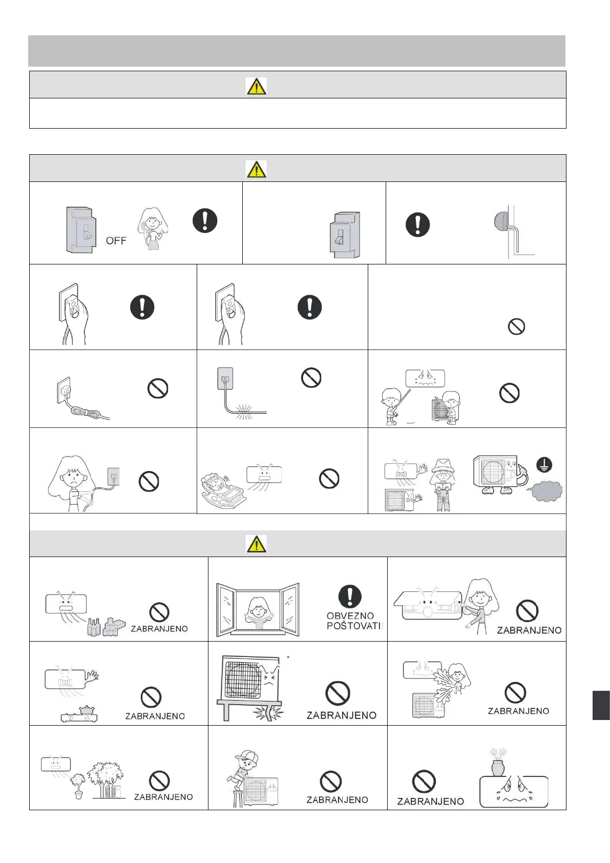 izvođenje radova moglo uzrokovati strujni udar, požar i istjecanje vode.