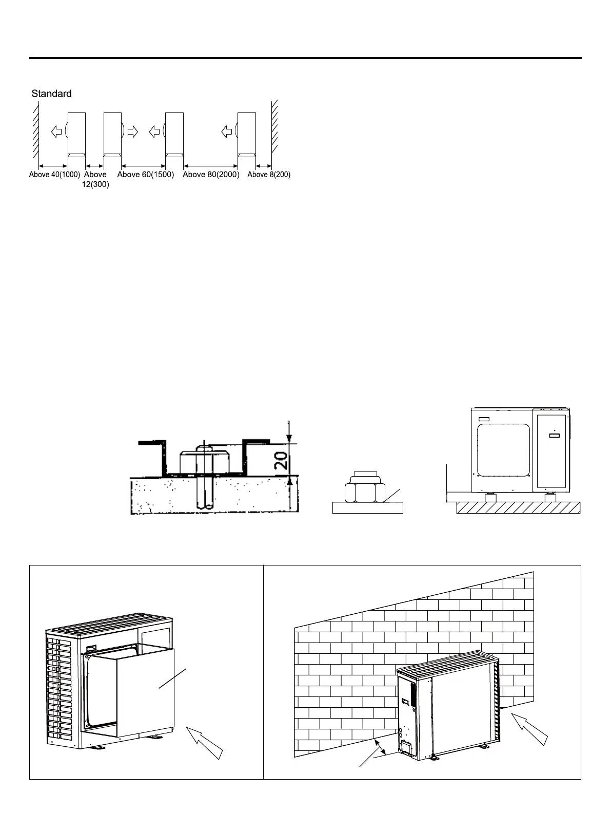 • Regarding the required air outlet space, position the units with consideration to the space required for the onsite