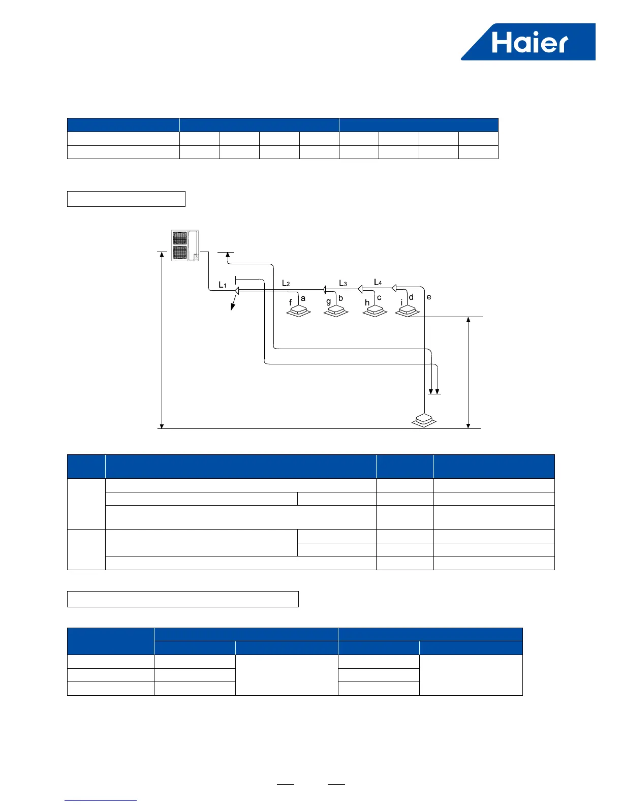 Total length of piping (actual length) 300m L1+L2+L3+L4+a+b+c+d+e
