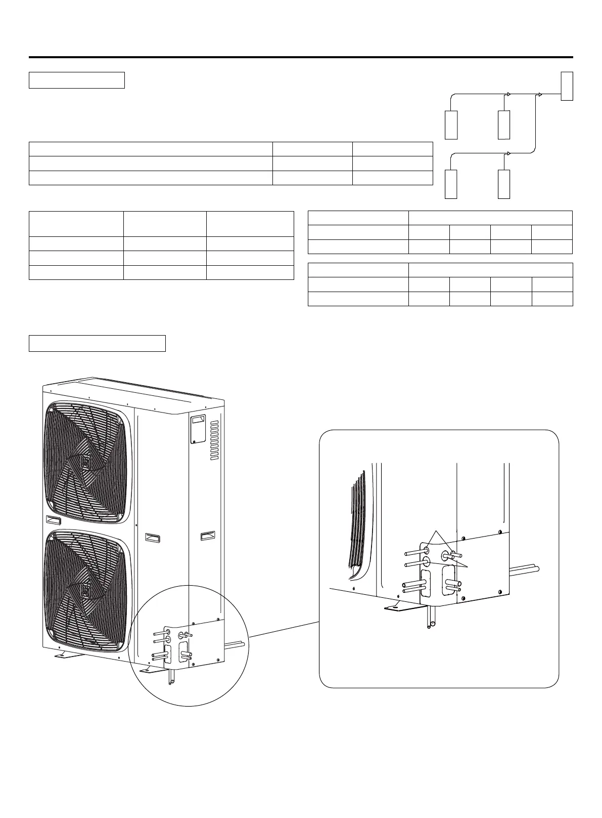 Total indoor capacity after the branch pipe (x100W) Gas pipe (mm) Liquid pipe (mm)
