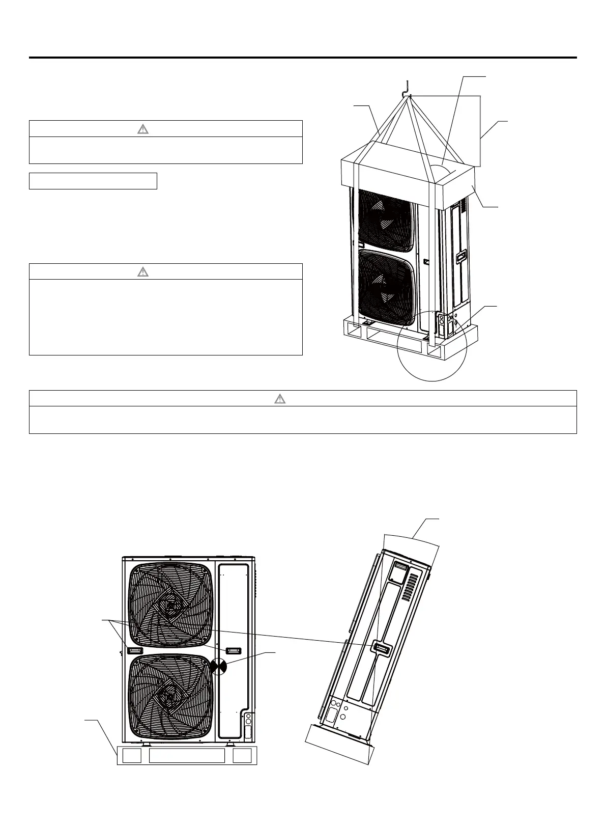 2. In order to prevent the dumping of the outdoor machine, the center of gravity of the unit should be noted as shown in