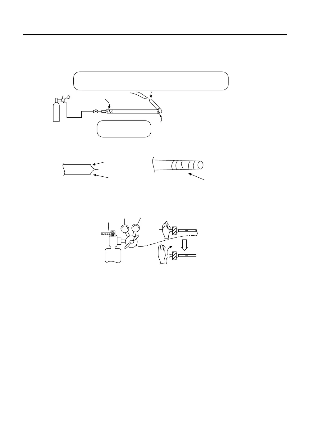 • The refrigerant pipe should be clean. The nitrogen should ow under the pressure of about