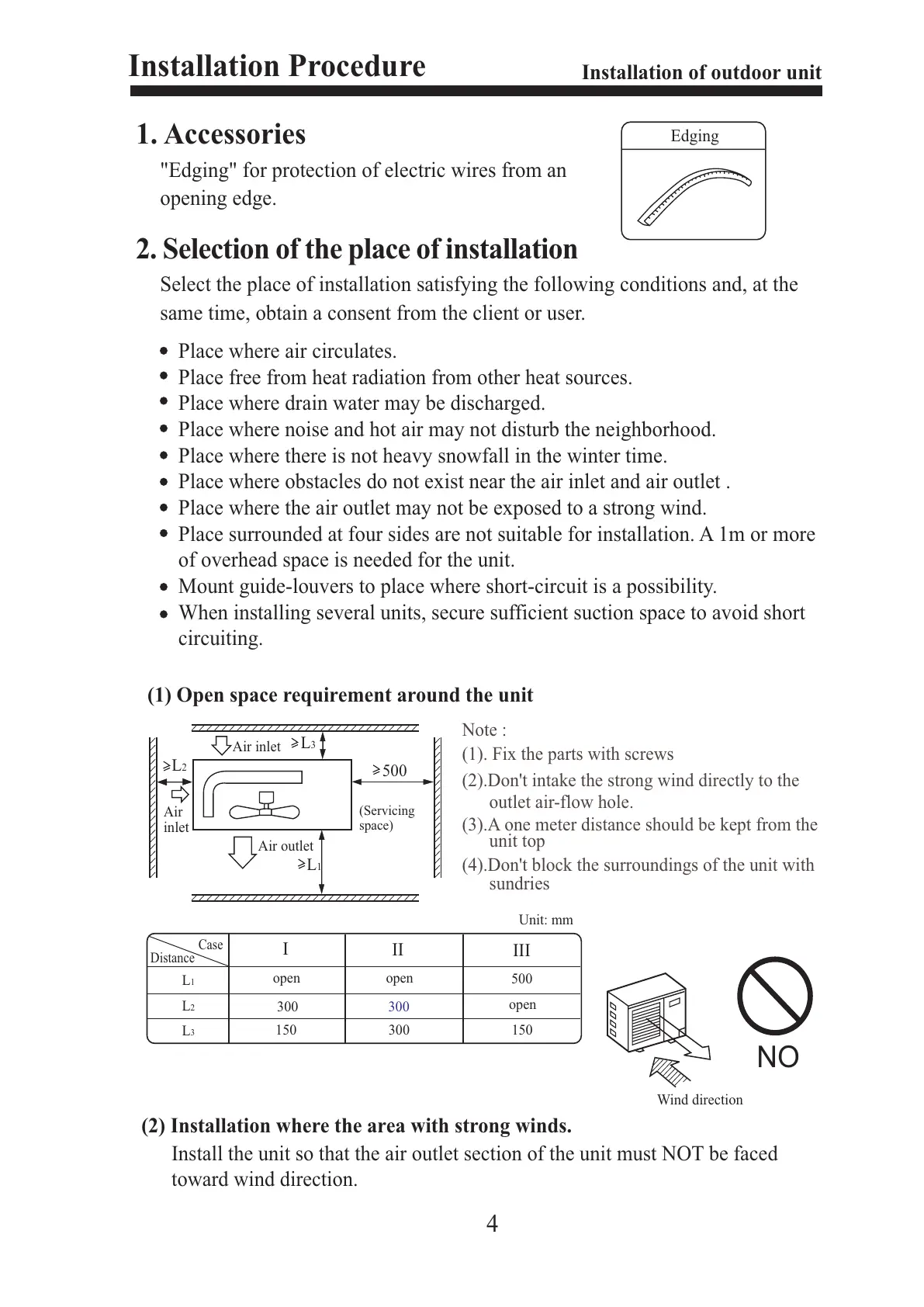 Place surrounded at four sides are not suitable for installation. A 1m or more
