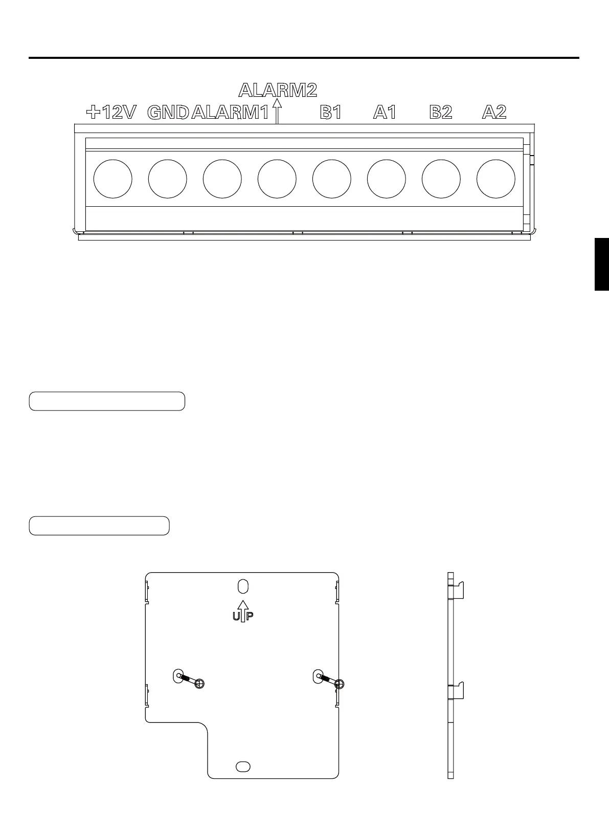 Contatto di collegamento allarme incendio (ALLARME1, ALLARME2): cortocircuitare ALLARME1 e ALLARME2 (porta riservata).