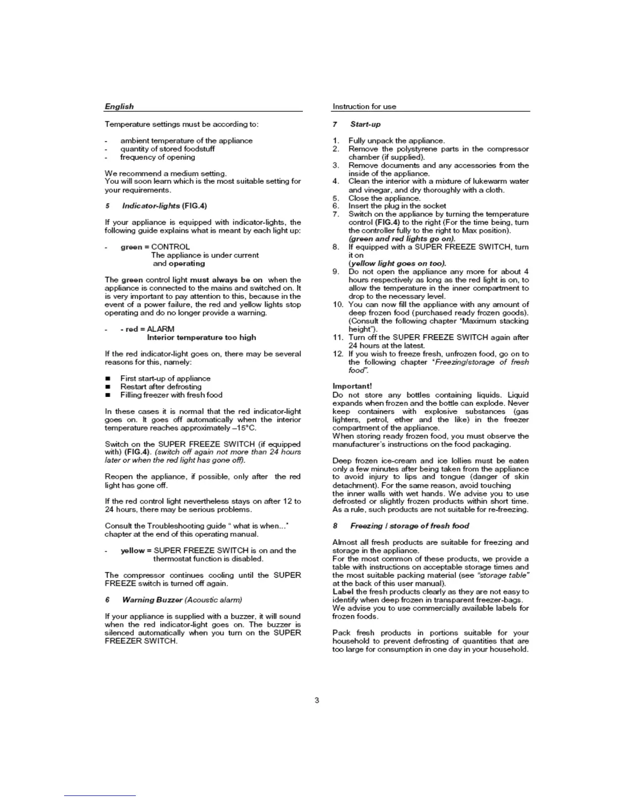 Haier BD-100G - Warning Buzzer; Start-Up; Freezing Storage of Fresh Food