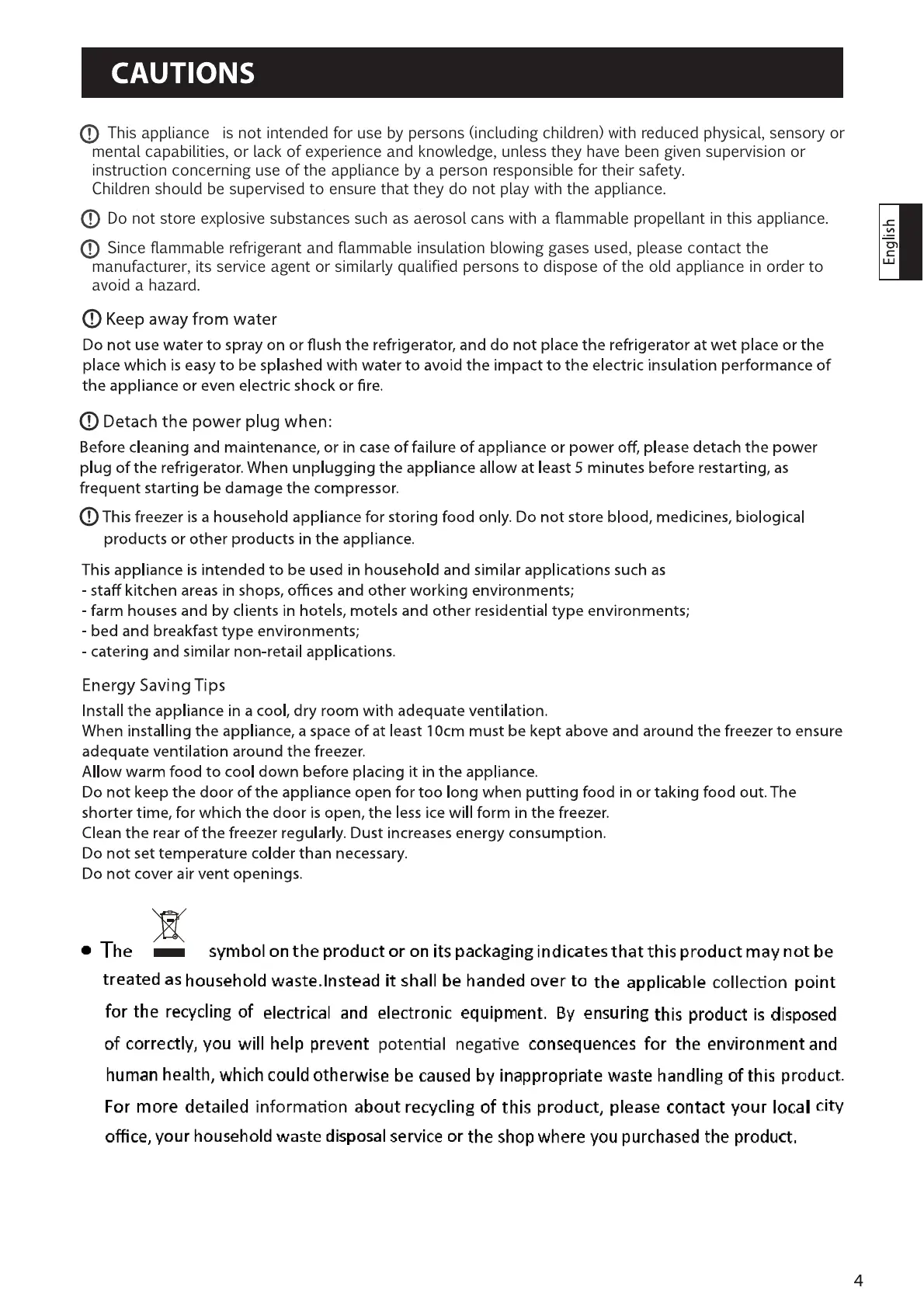 This appliance is not intended for use by persons (including children) with reduced physical, sensory or