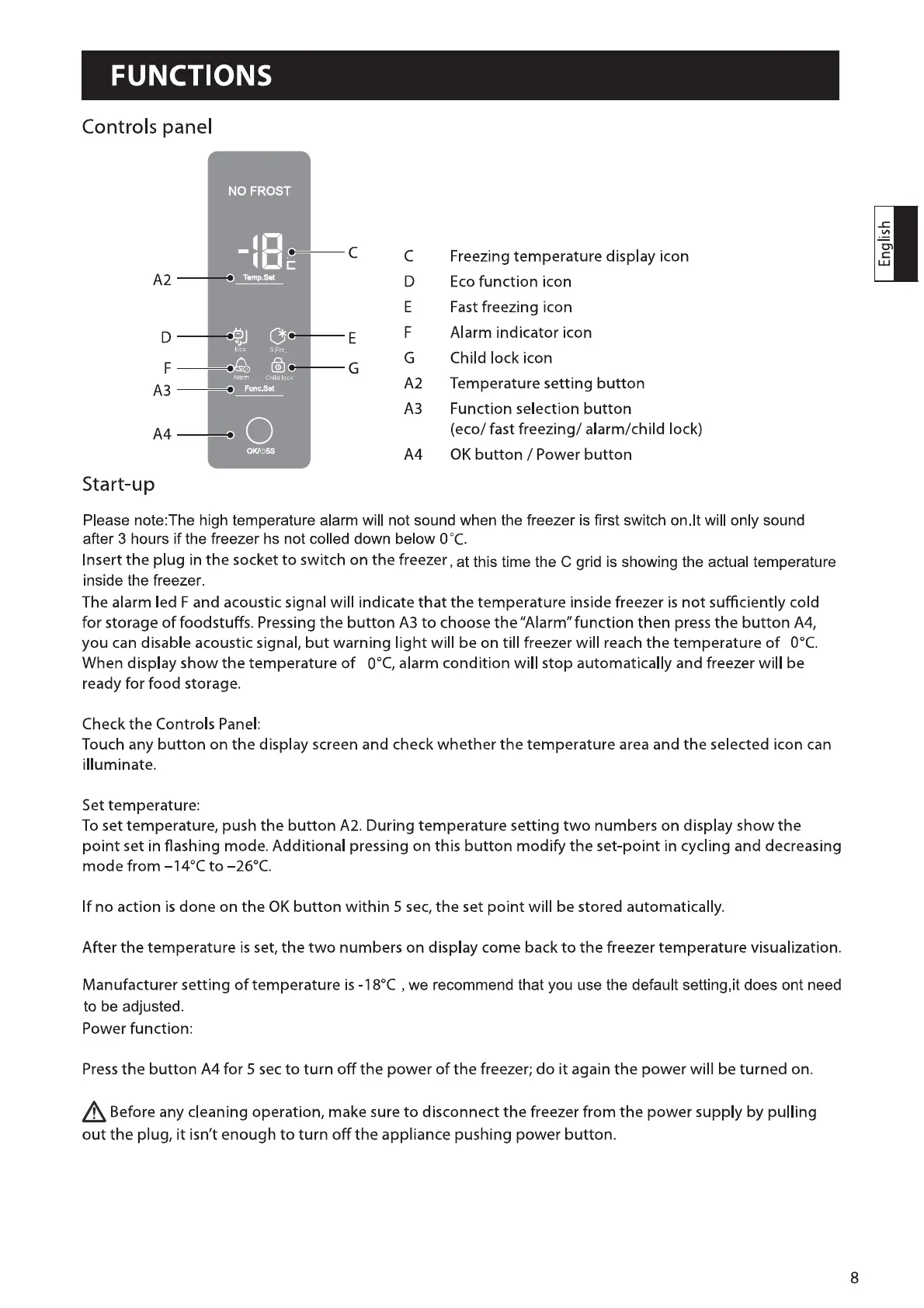 Haier BD-248WL - Functions; Controls Panel; Start-up; Set Temperature
