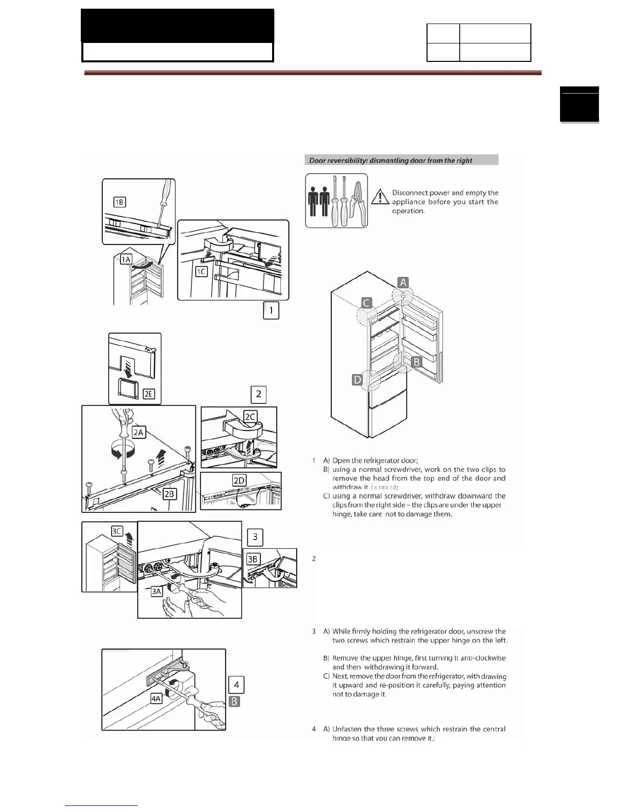 3-1-1.Removing and replacing the right door of refrigerator compartment
