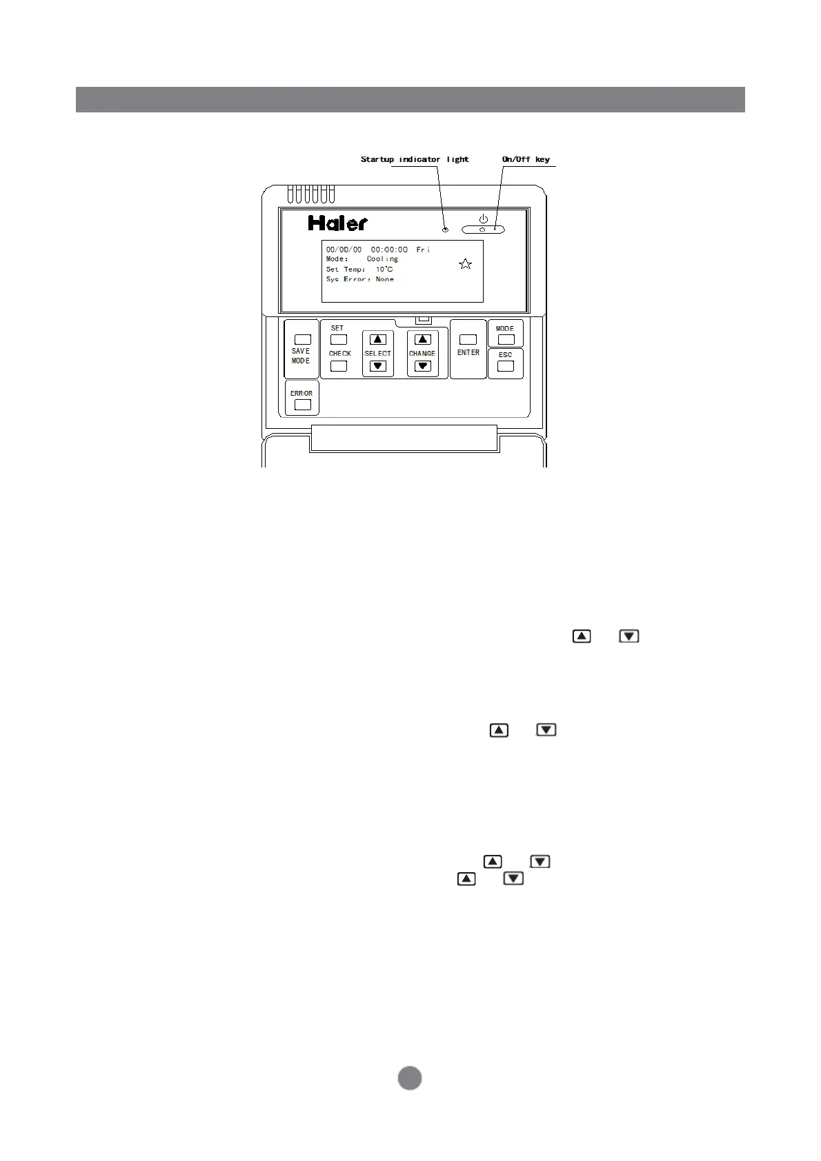 key to increase or decrease setting parameters; when the wired controller is not in setting mode,