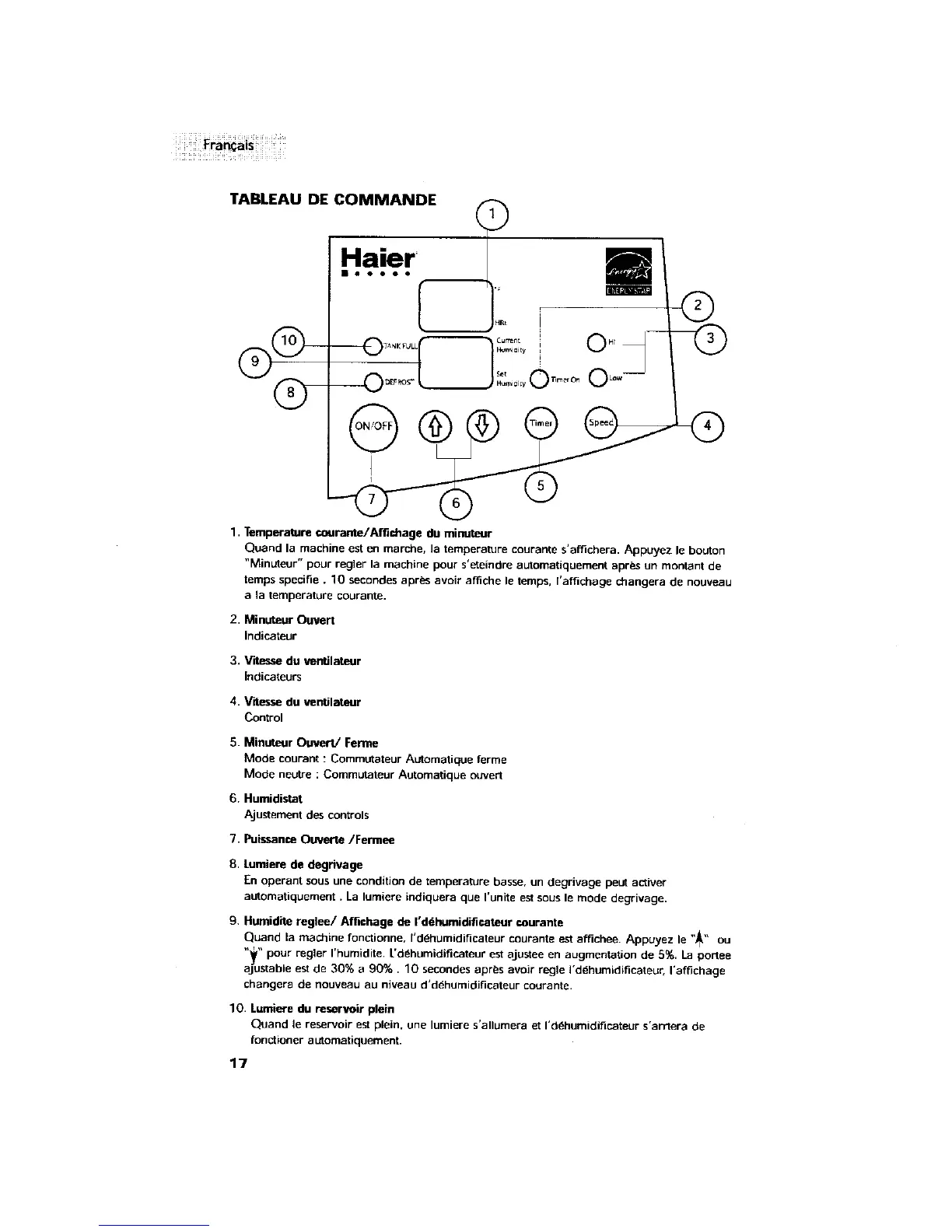 ajustabie est de 30% a 90%, 10 secondes apr_s avoir regle I'dehumidificateur, raffichage