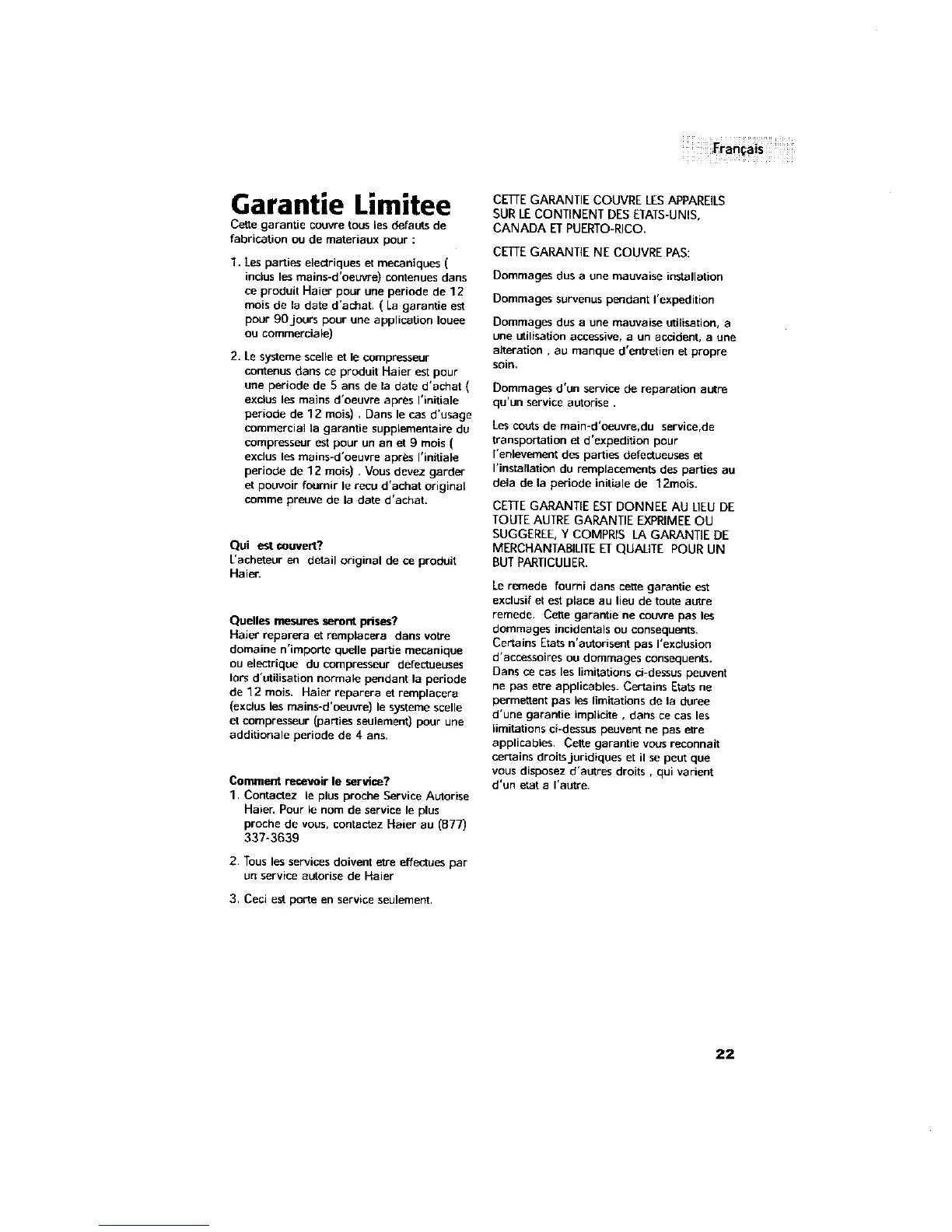 TOUTE AUTRE GARANTIE EXPRIMEEOU