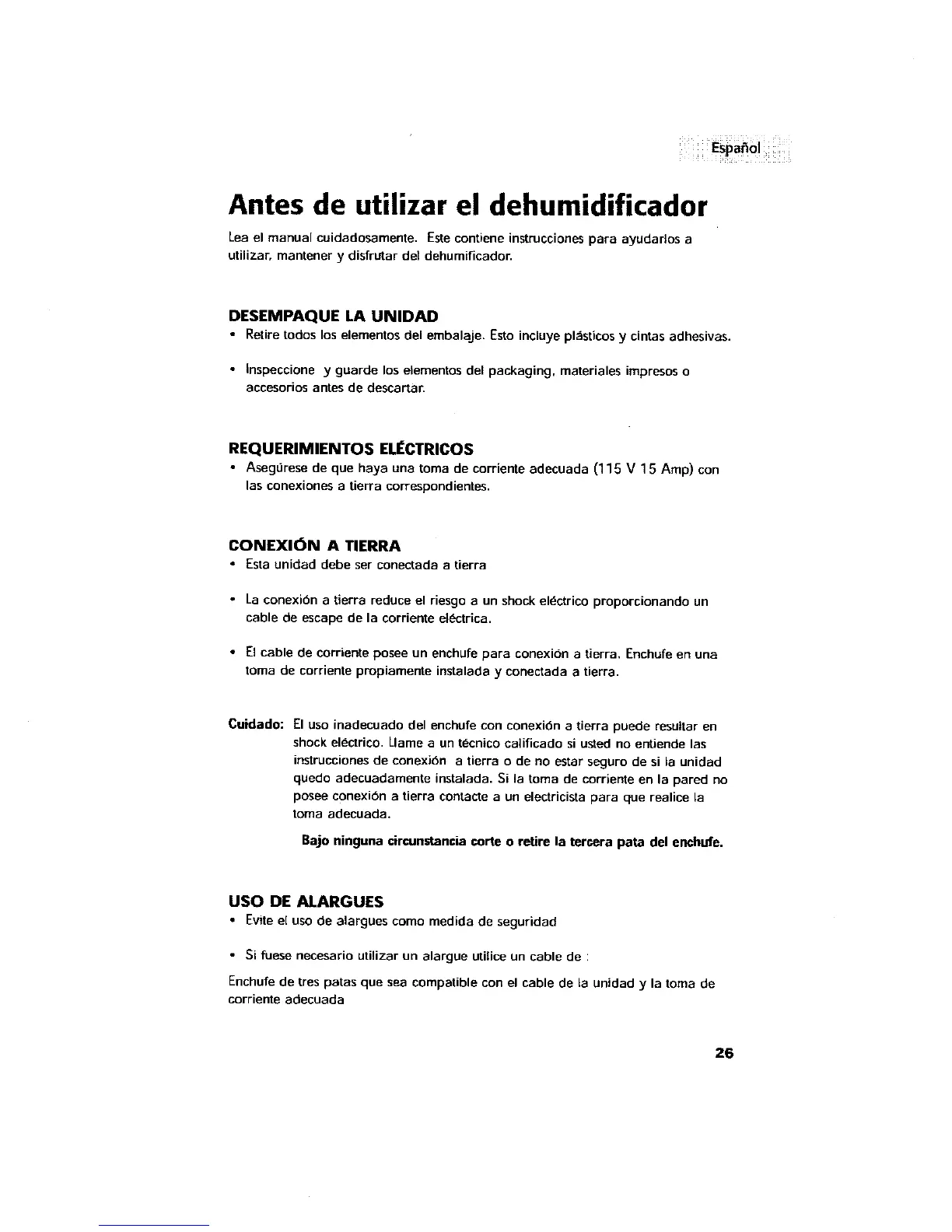 Antes de utilizar el dehumidificador