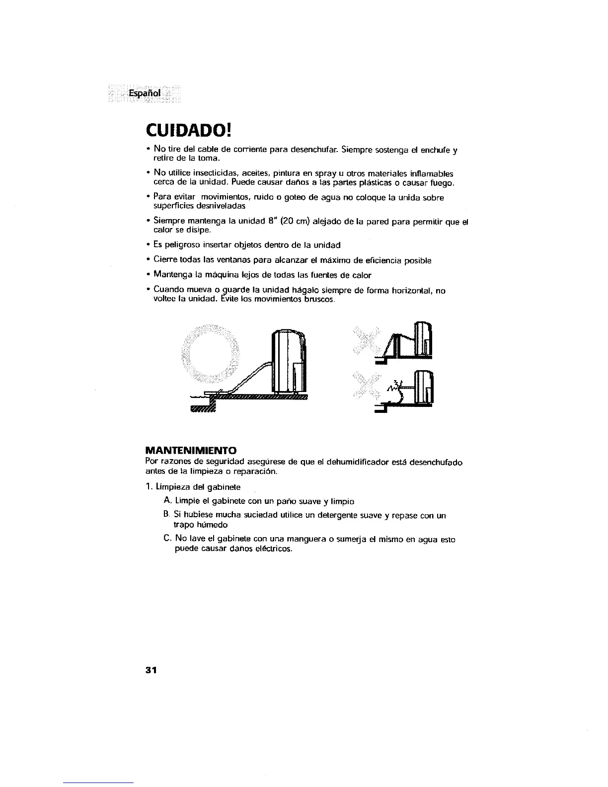 Por razones de seguridad asegurese de que el dehumidificador est_ desenchufado