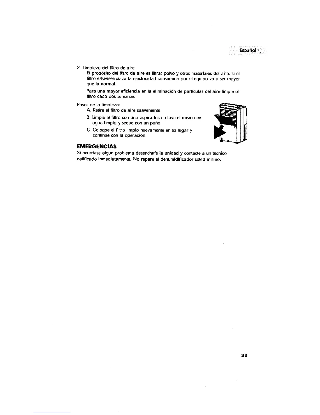 2, Limpieza del filtro de aire