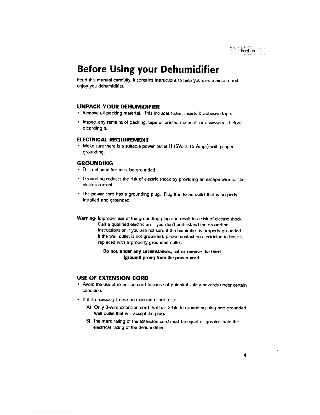 • Avoid the use of extension cord because of potential safety hazards under certain
