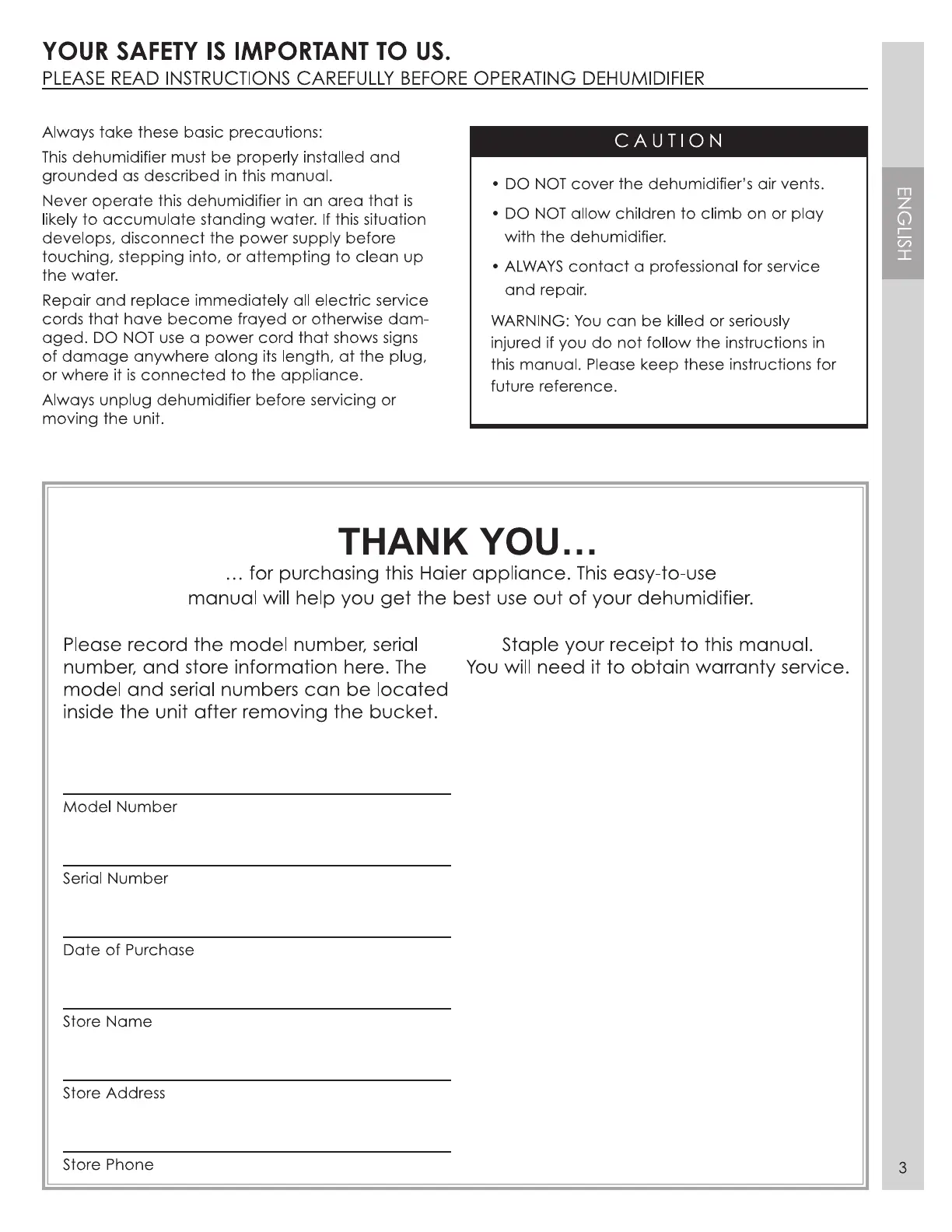 Haier DE Series - Safety First: Essential Precautions; General Safety Measures; Operational Cautions; Critical Operating Warnings