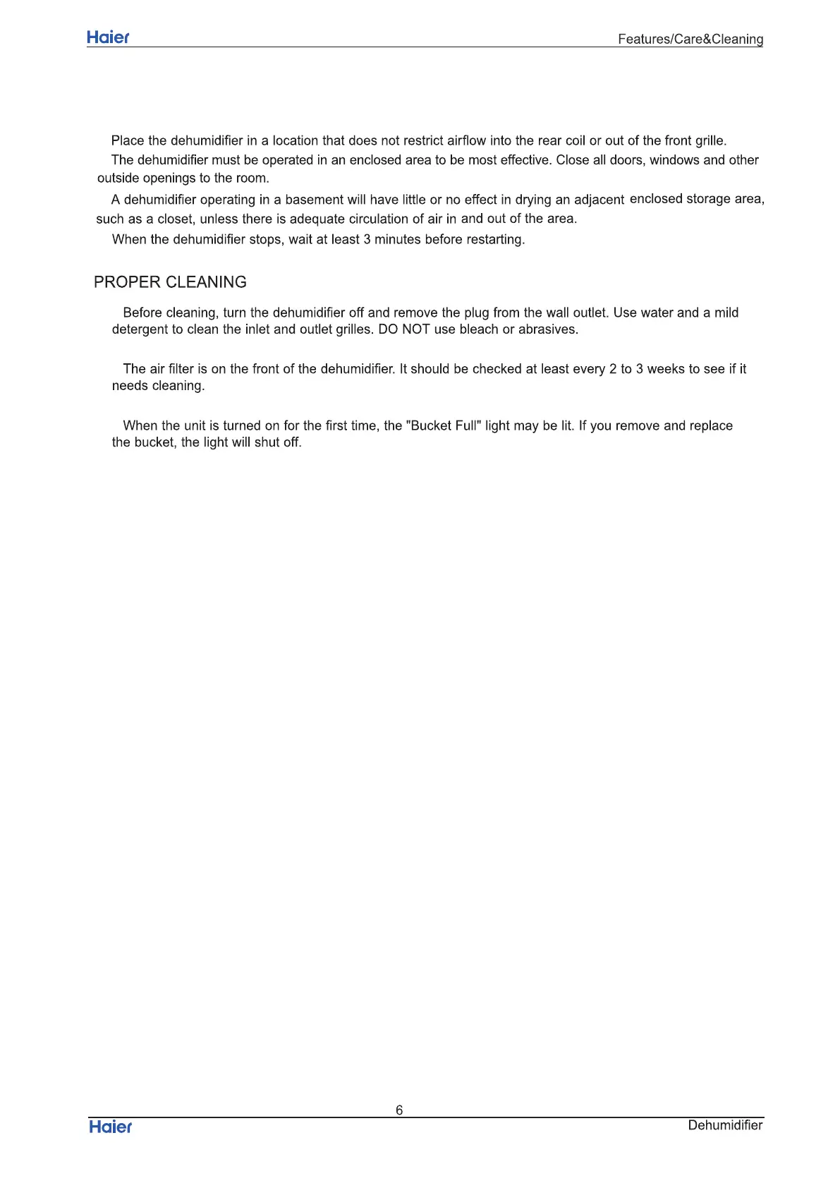 Haier DE65EM - Proper Cleaning