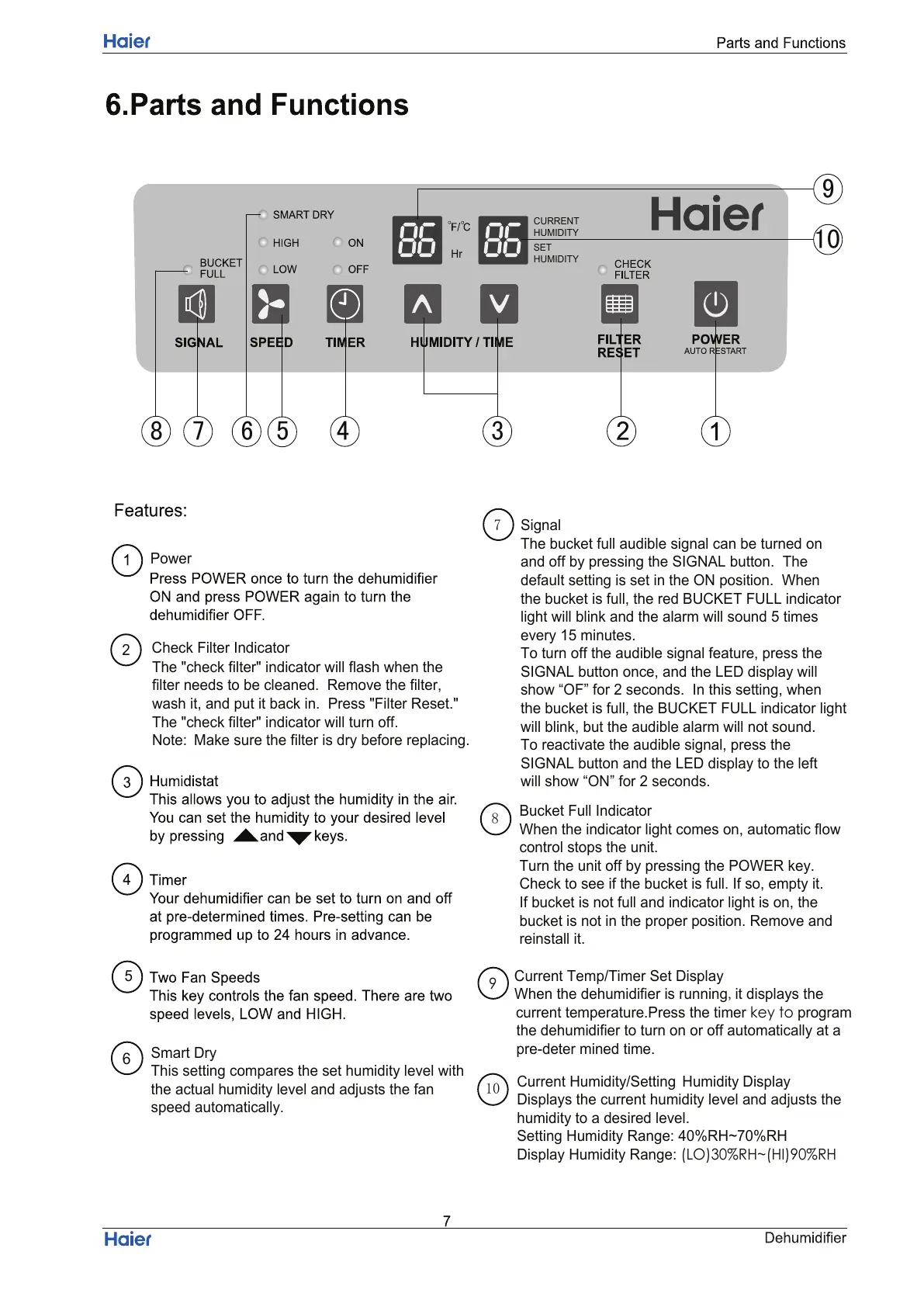 Setting Humidity Range: 40%RH~70%RH