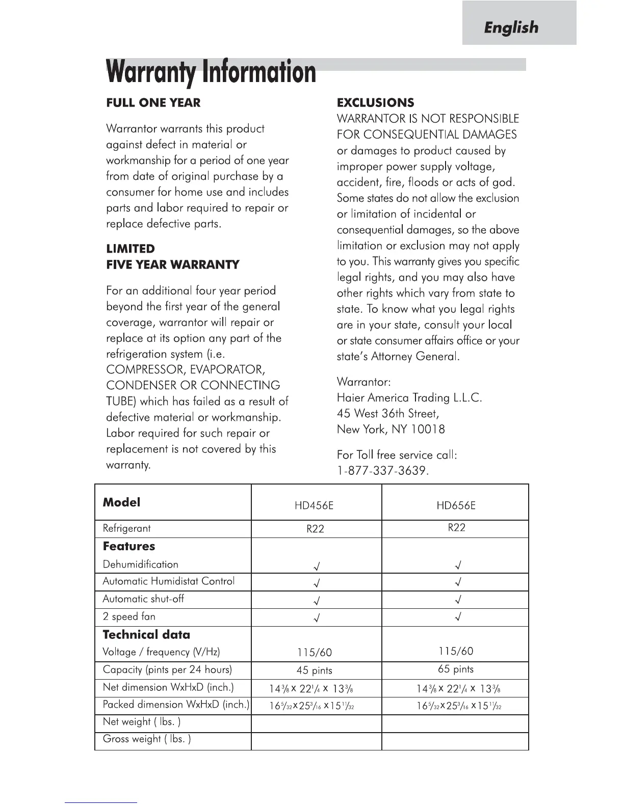 Haier Dehumidifier - Warranty Information and Exclusions; Warranty Coverage Details; Warranty Exclusions Explained