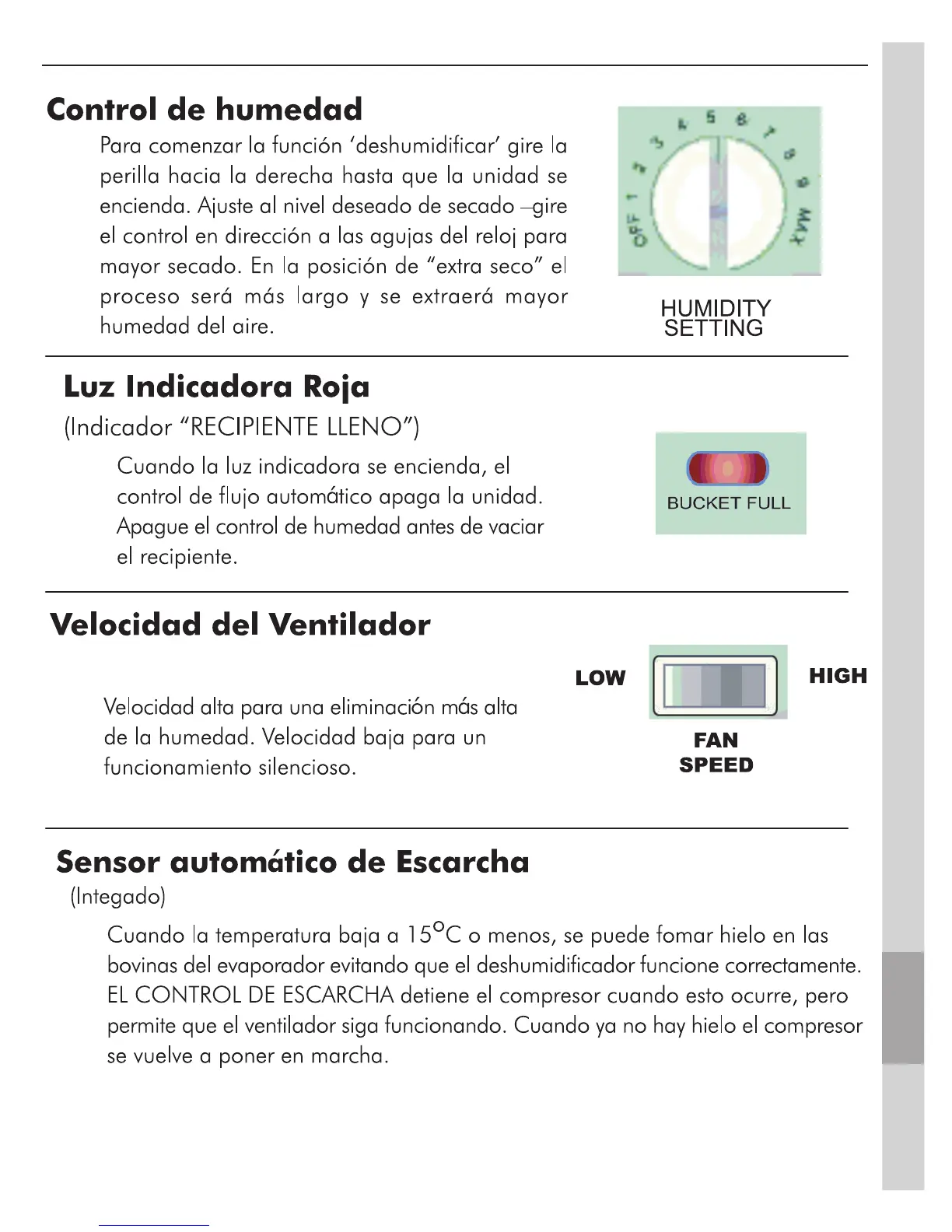 FAMILIARÍCESE CON LOS CONTROLES DE SU DESHUMIDIFICADOR.