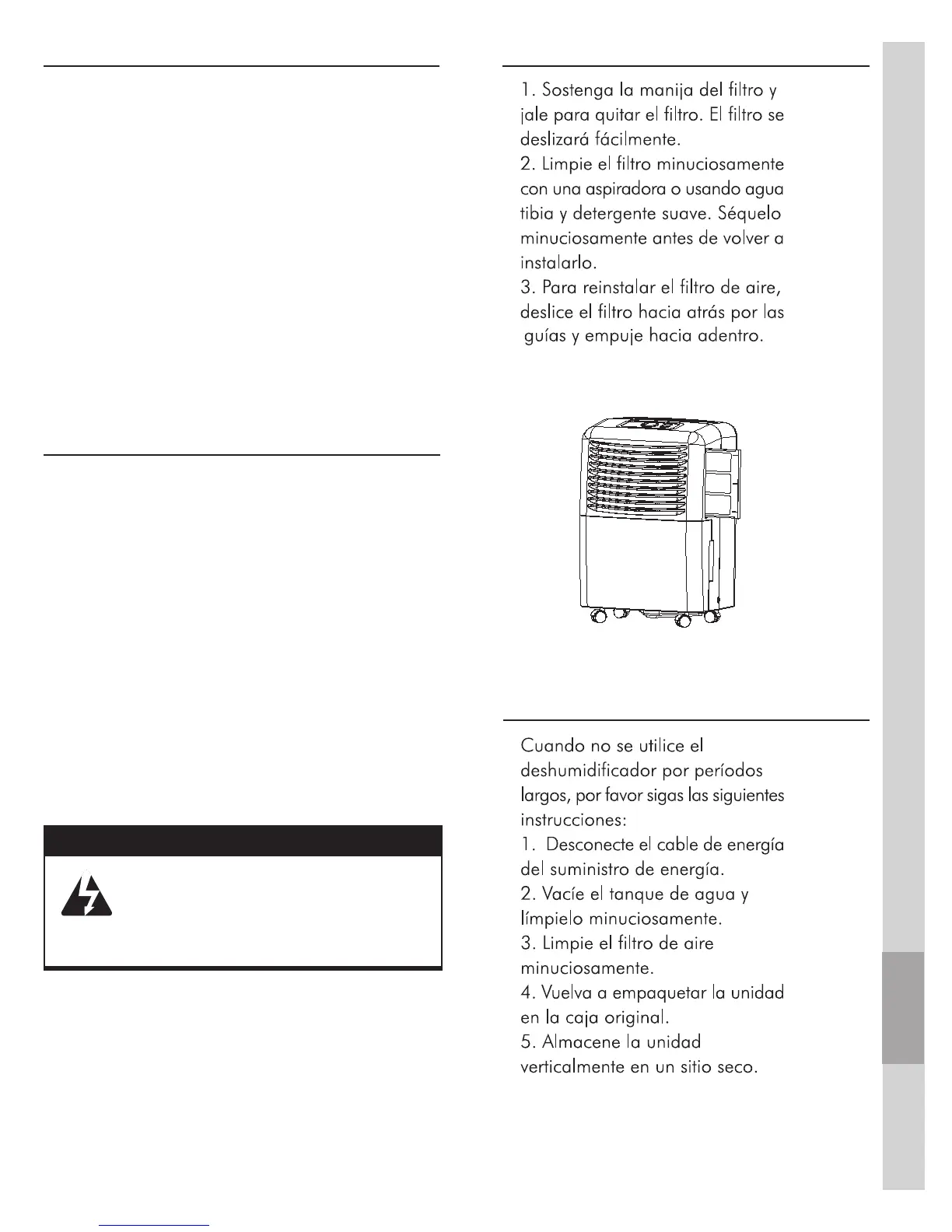 • El deshumidificador debe utilizarse en un área