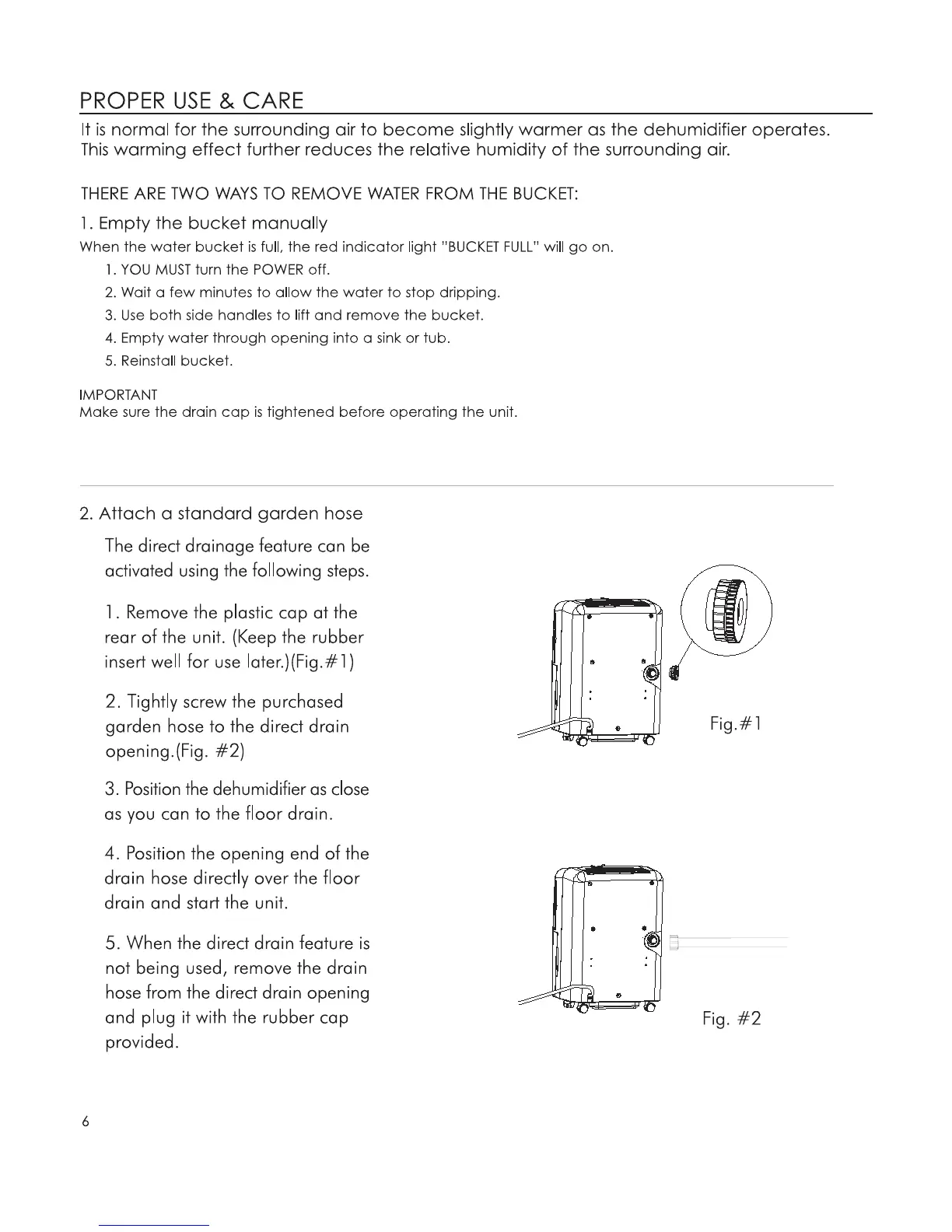Haier DM32EK - Operating and Maintaining Your Dehumidifier; Manual Water Bucket Drainage; Continuous Drainage Setup