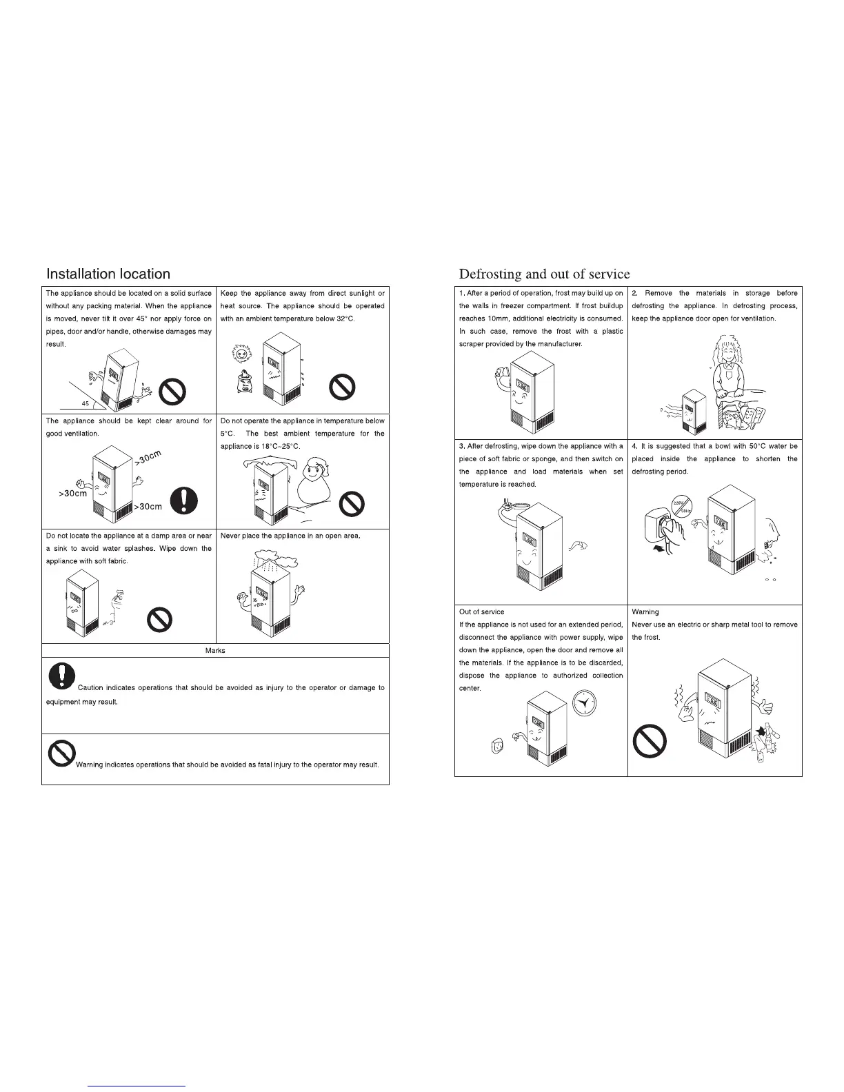 Haier DW-40L626 - Installation Location; Defrosting and out of Service