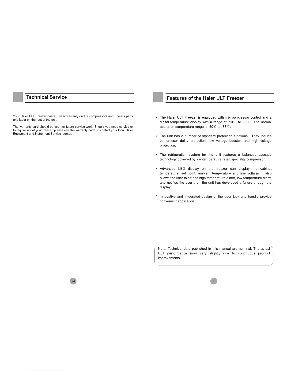 Haier DW-86W100 - Technical Service; Features of the Haier ULT Freezer