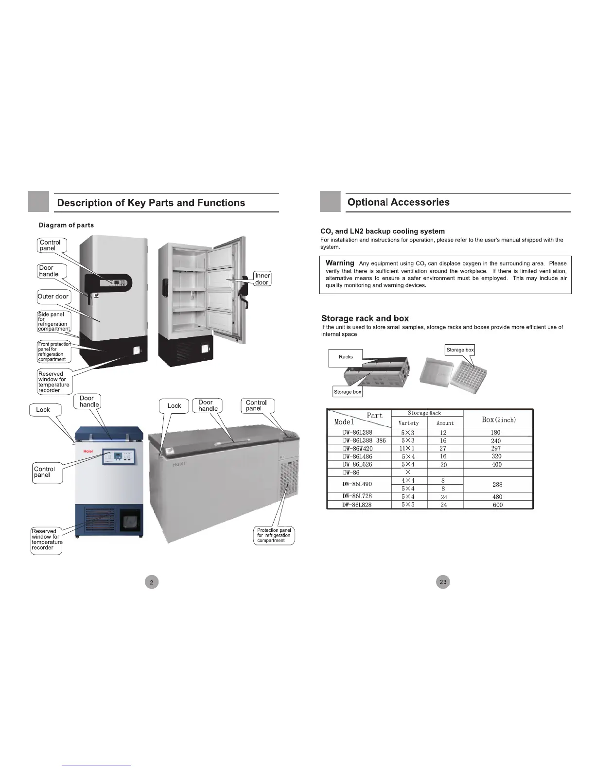 Haier DW-86W100 - Description of Key Parts and Functions; Optional Accessories