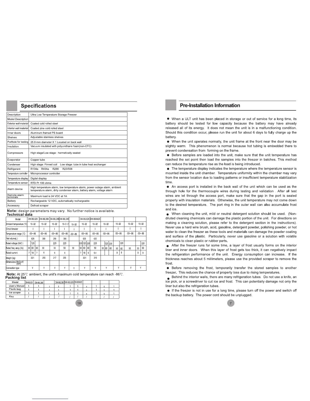 Haier DW-86W100 - Specifications; Pre-Installation Information
