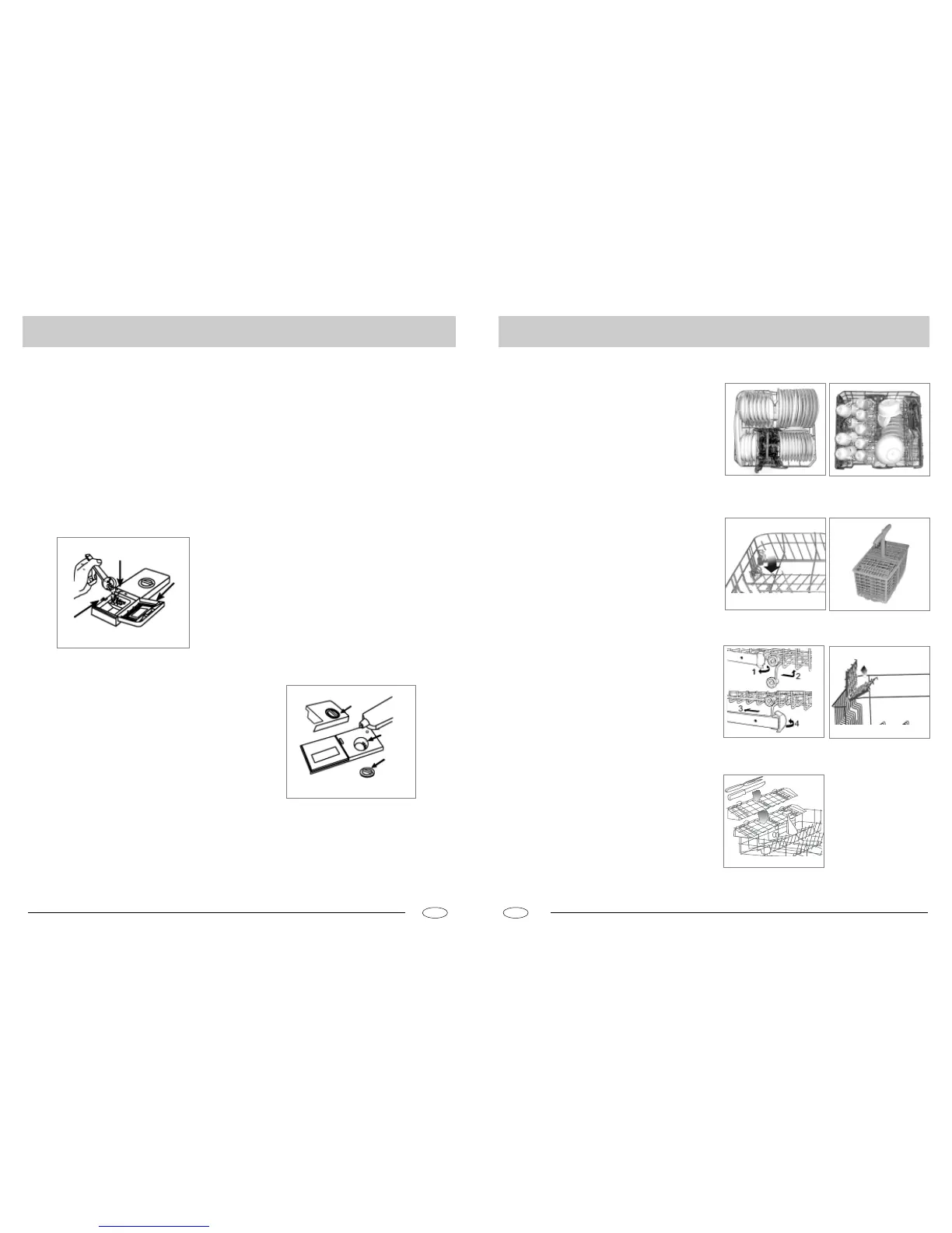 - Der Besteckkorb kann zweigeteilt werden (siehe Abb.B ).