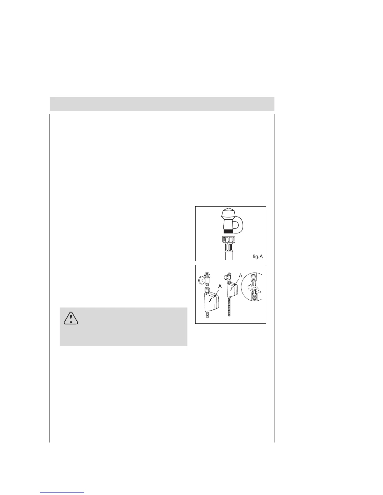 box "A" with the water supply hose must be attached to the water supply tap as shown in Fig. B. If the