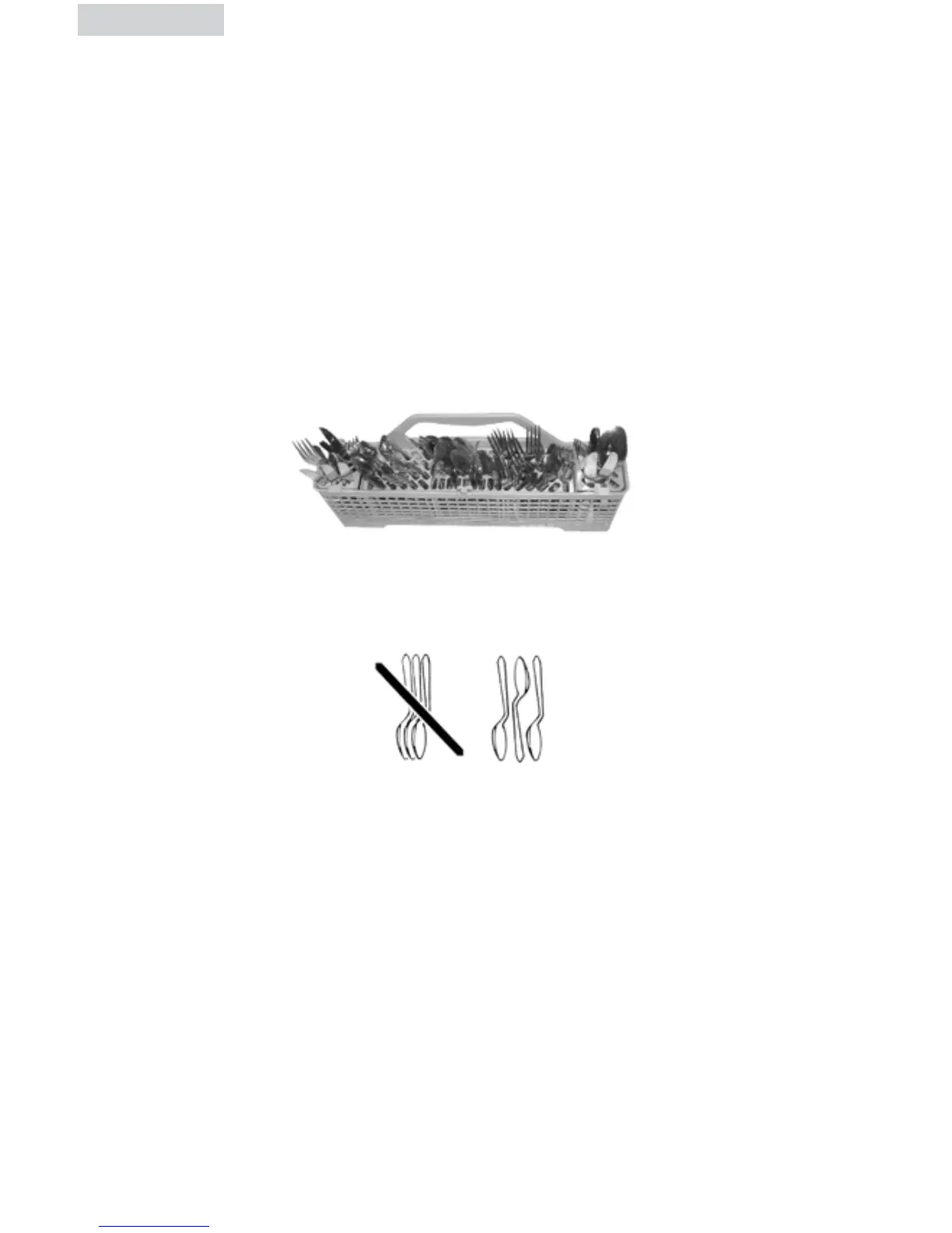 Cargue la canasta de los cubiertos mientras está en la rejilla inferior o quite la