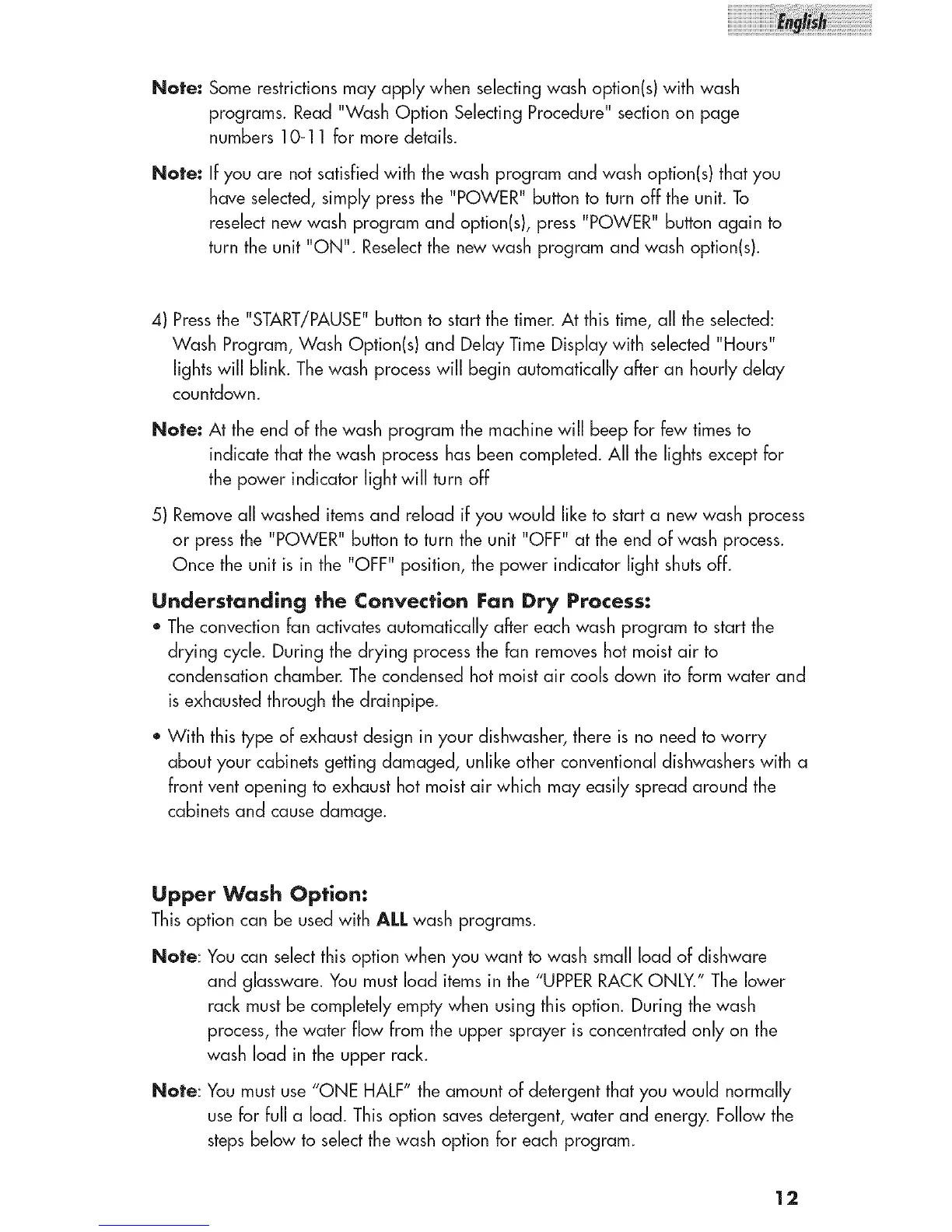 Note: If you are not satisfied with the wash program and wash option(s)that you